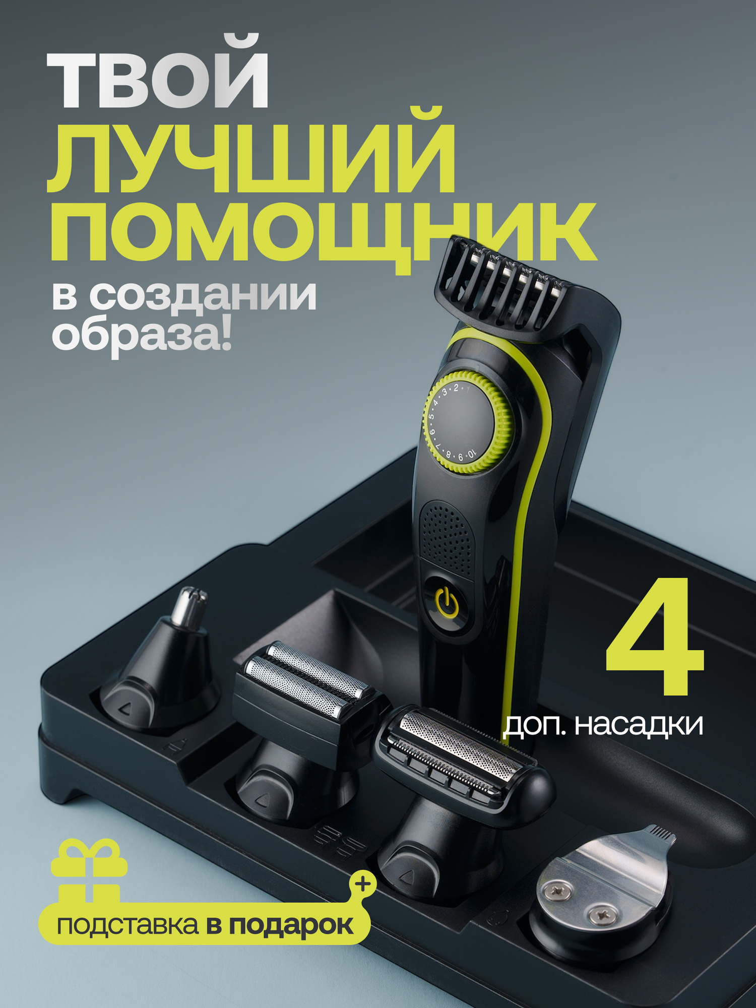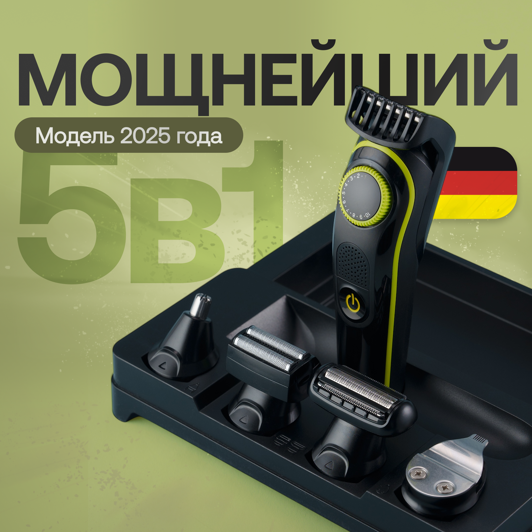 10 цен на Триммер для бороды; 5 насадок; сверхострые лезвия из нержавеющей стали
