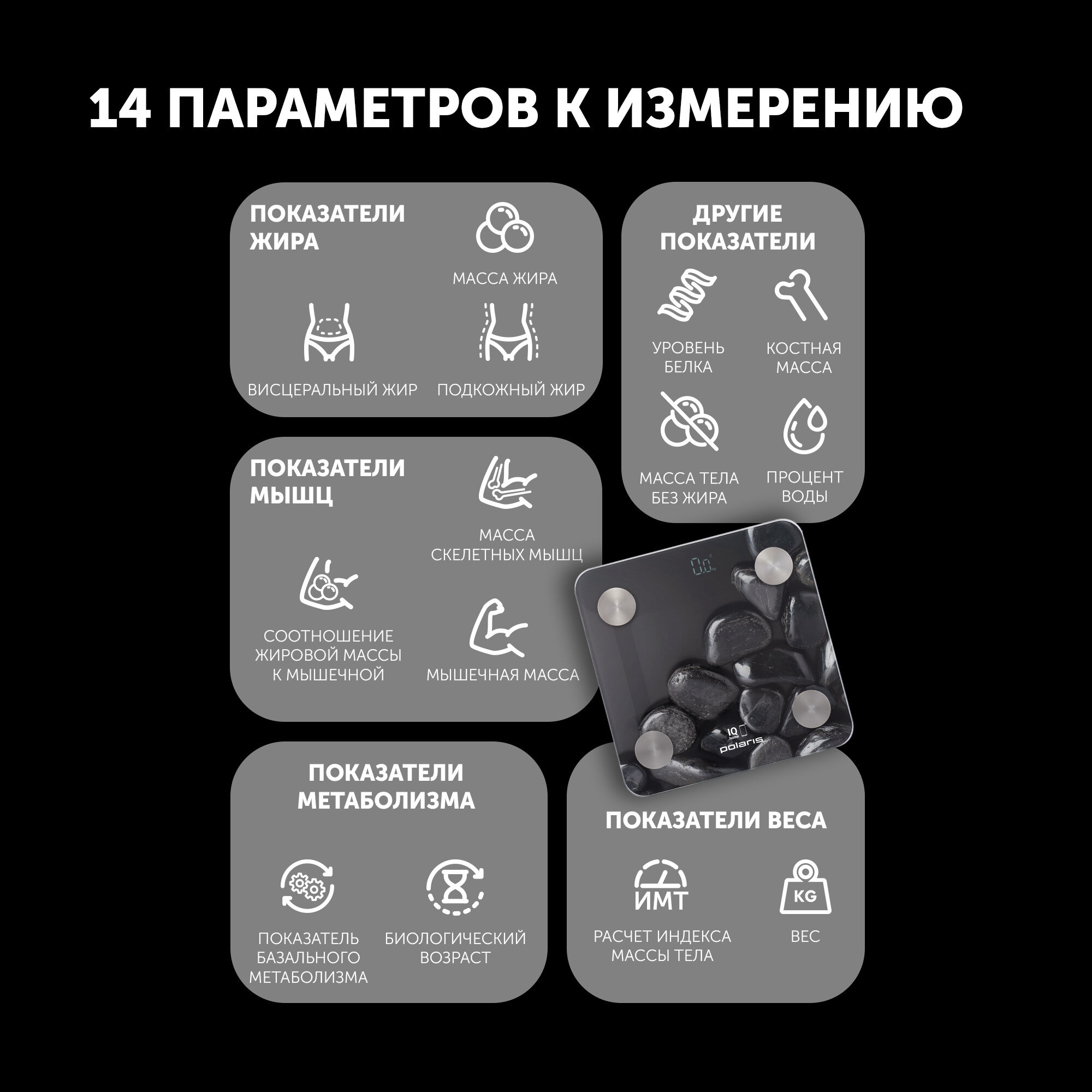 10 цен на Весы напольные Polaris IQ Home PWS 1837, электронные, синхронизация со смартфоном, черные