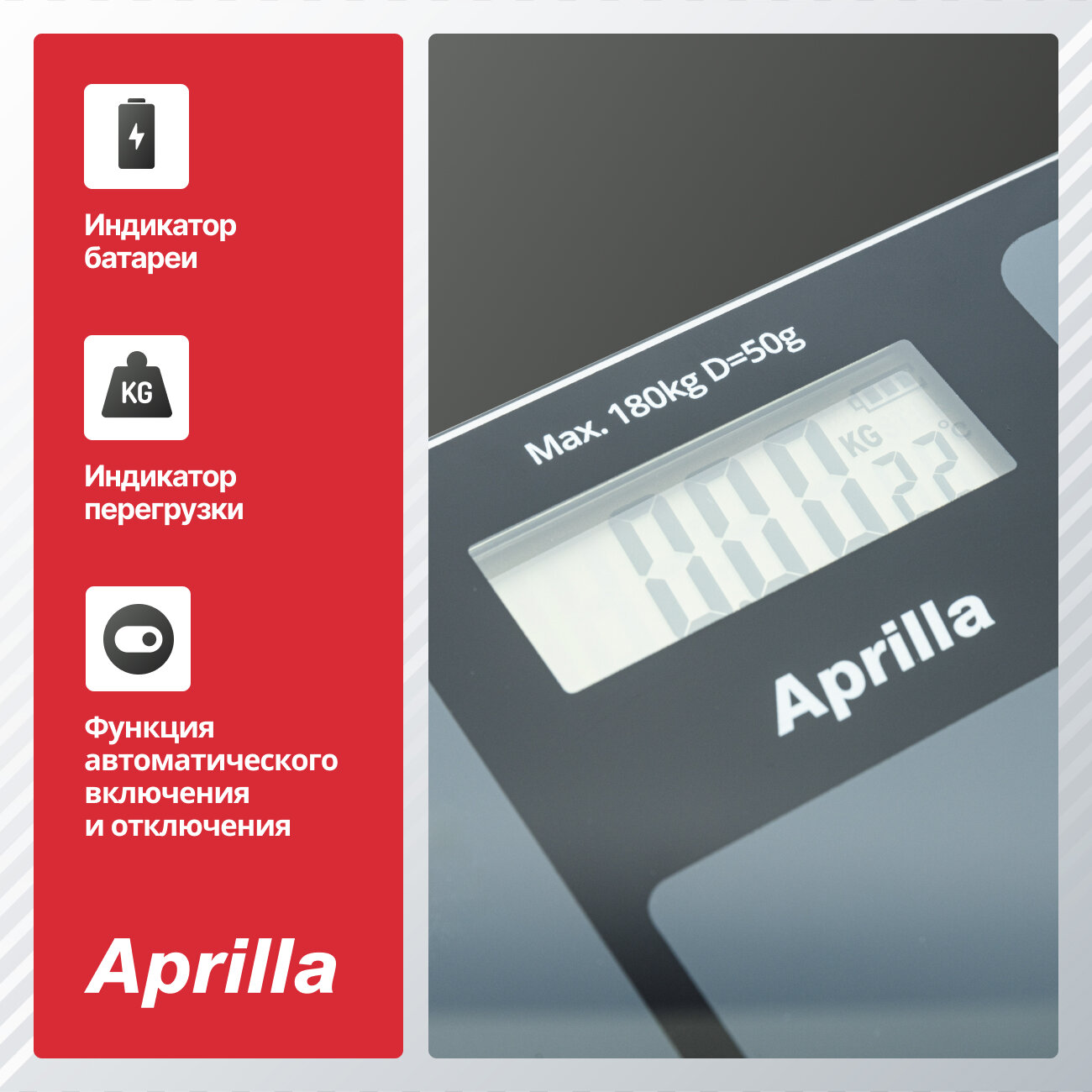 Электронные напольные весы Aprilla ABS-1033 с индикатором температуры и батареи, закаленное стекло информация: