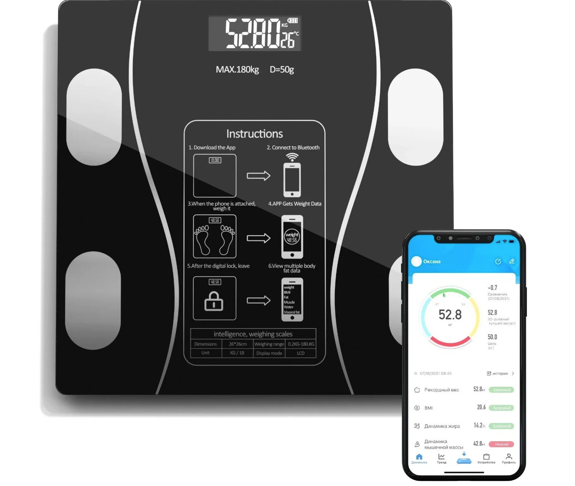 Напольные умные весы, электронные напольные весы для Xiaomi, iPhone, Android, черные. информация: