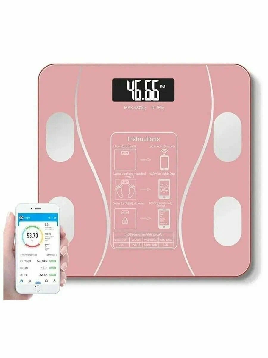10 цен на Напольные умные весы, электронные напольные весы c Bluetooth, с функцией измерения биометрии тела, розовый, на батарейках