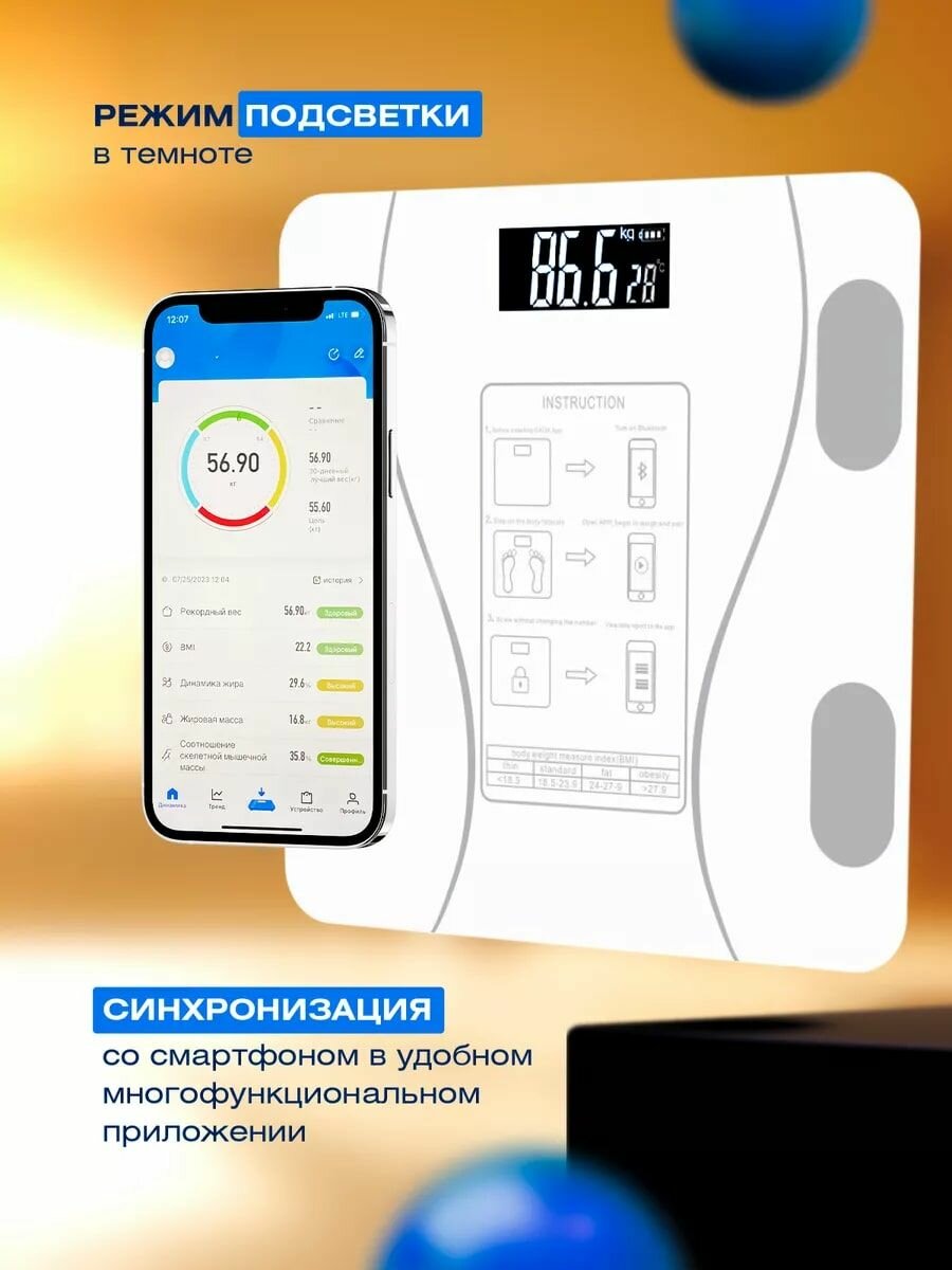 Напольные весы LineHaus LH-7705 DL-450BT 180кг Белые Bluetooth информация: