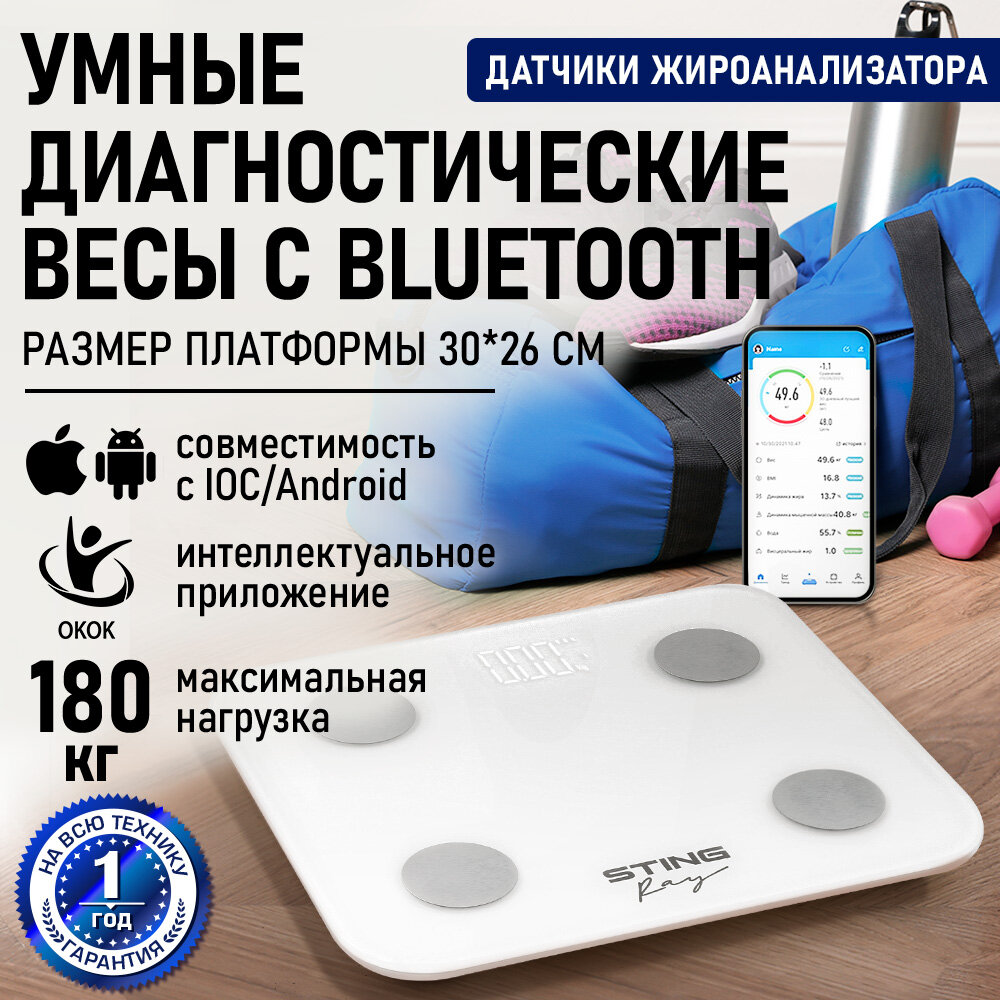 Отзывы на Весы напольные умные STINGRAY ST-SC5003A белый жемчуг диагностические с Bluetooth