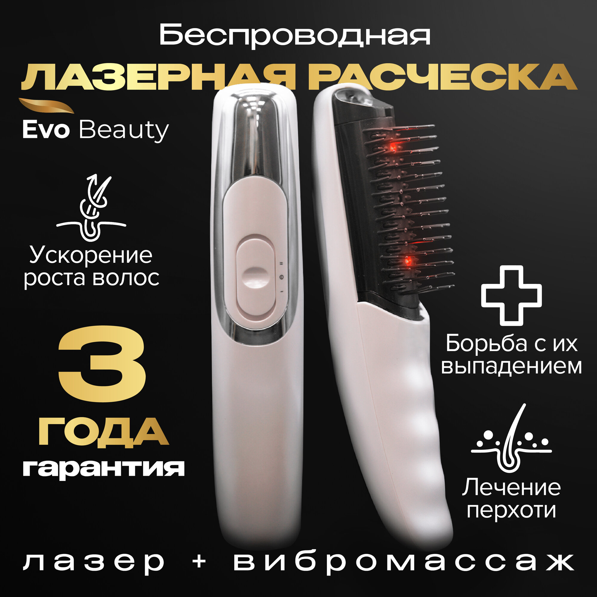 Лазерная расчёска c ИК от выпадения и для роста волос, массажер электрический для головы Evo Beauty информация: