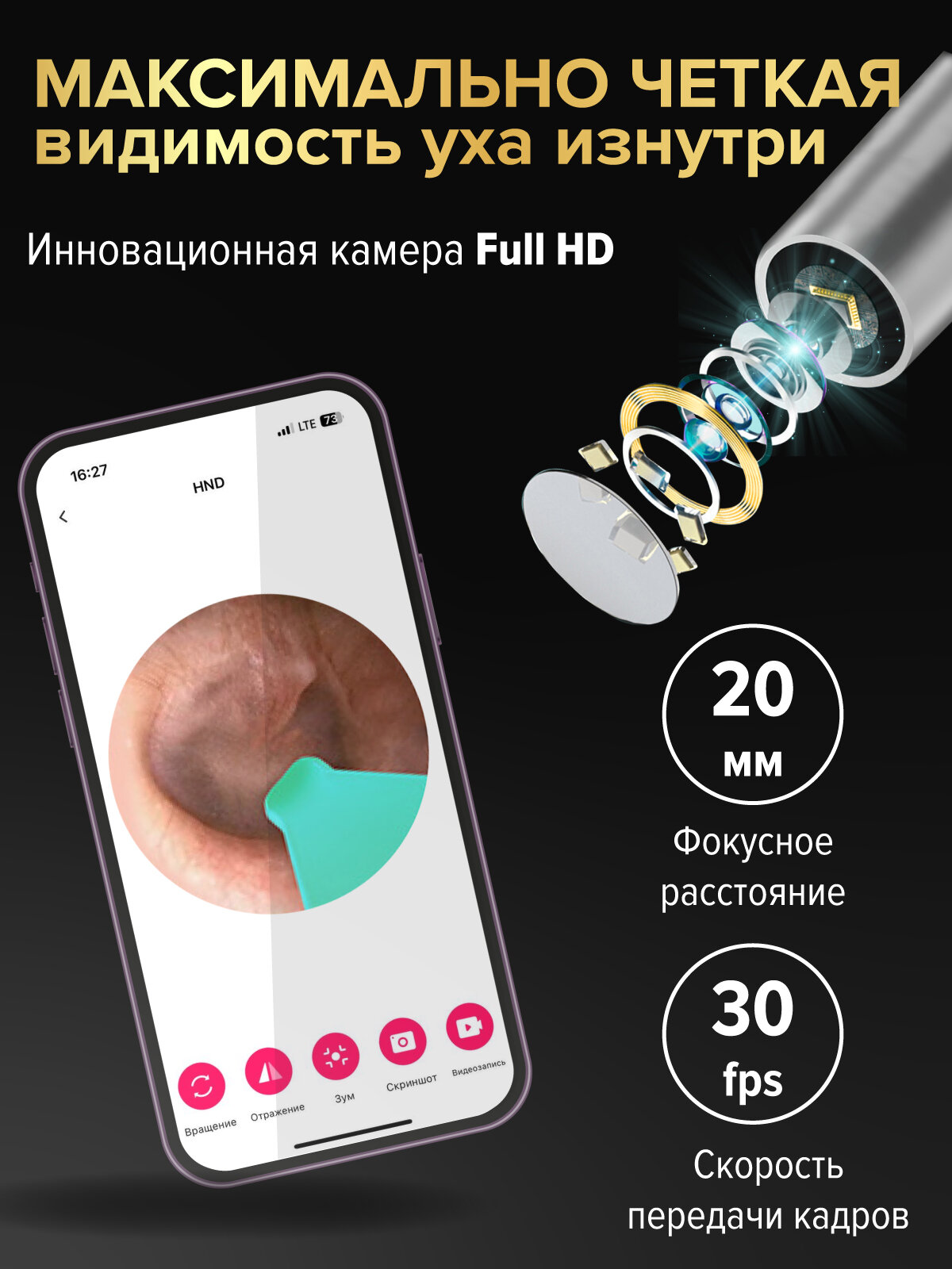Отзывы на Умная палочка для чистки ушей с видеокамерой HD и комплектом из 4 насадок