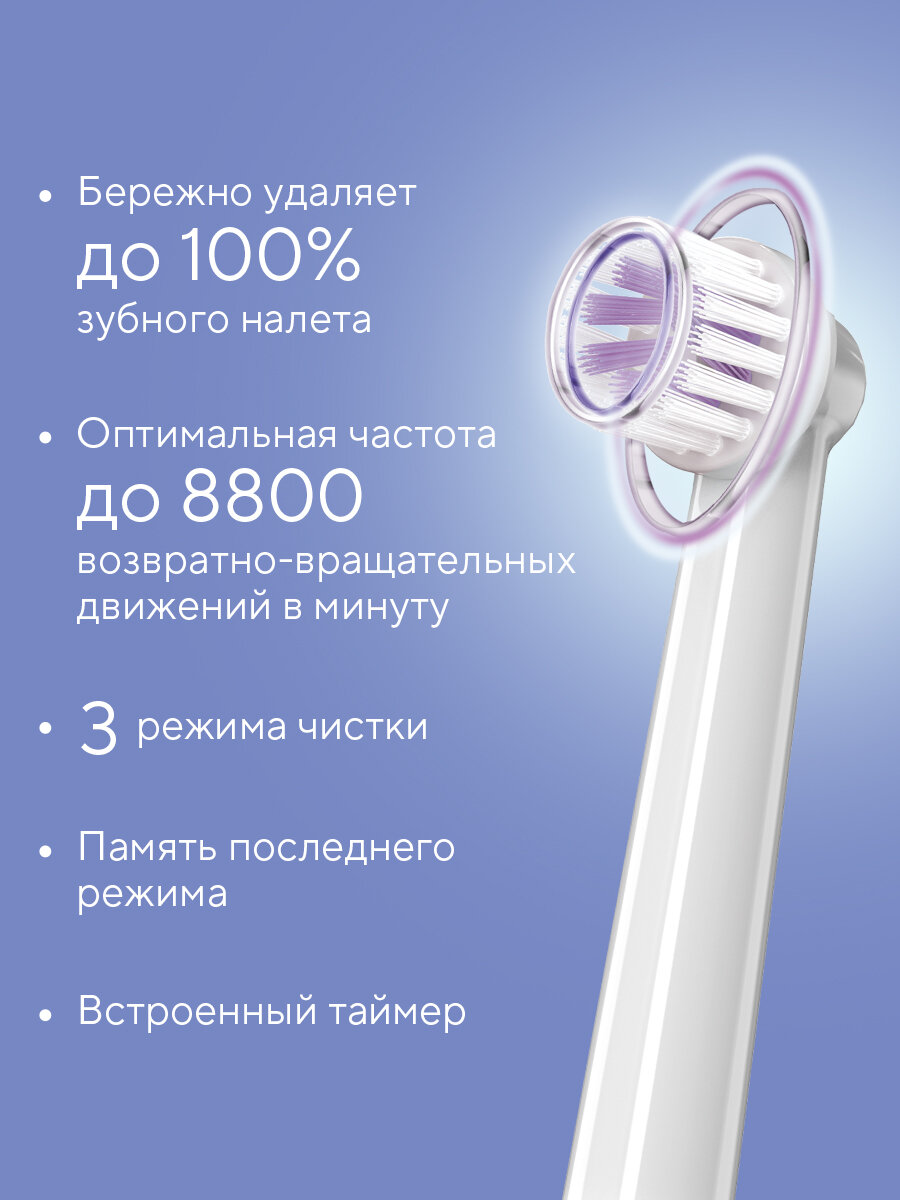 | Режимы работы | деликатная чистка / ежедневная чистка / массаж / отбеливание / уход за деснами |