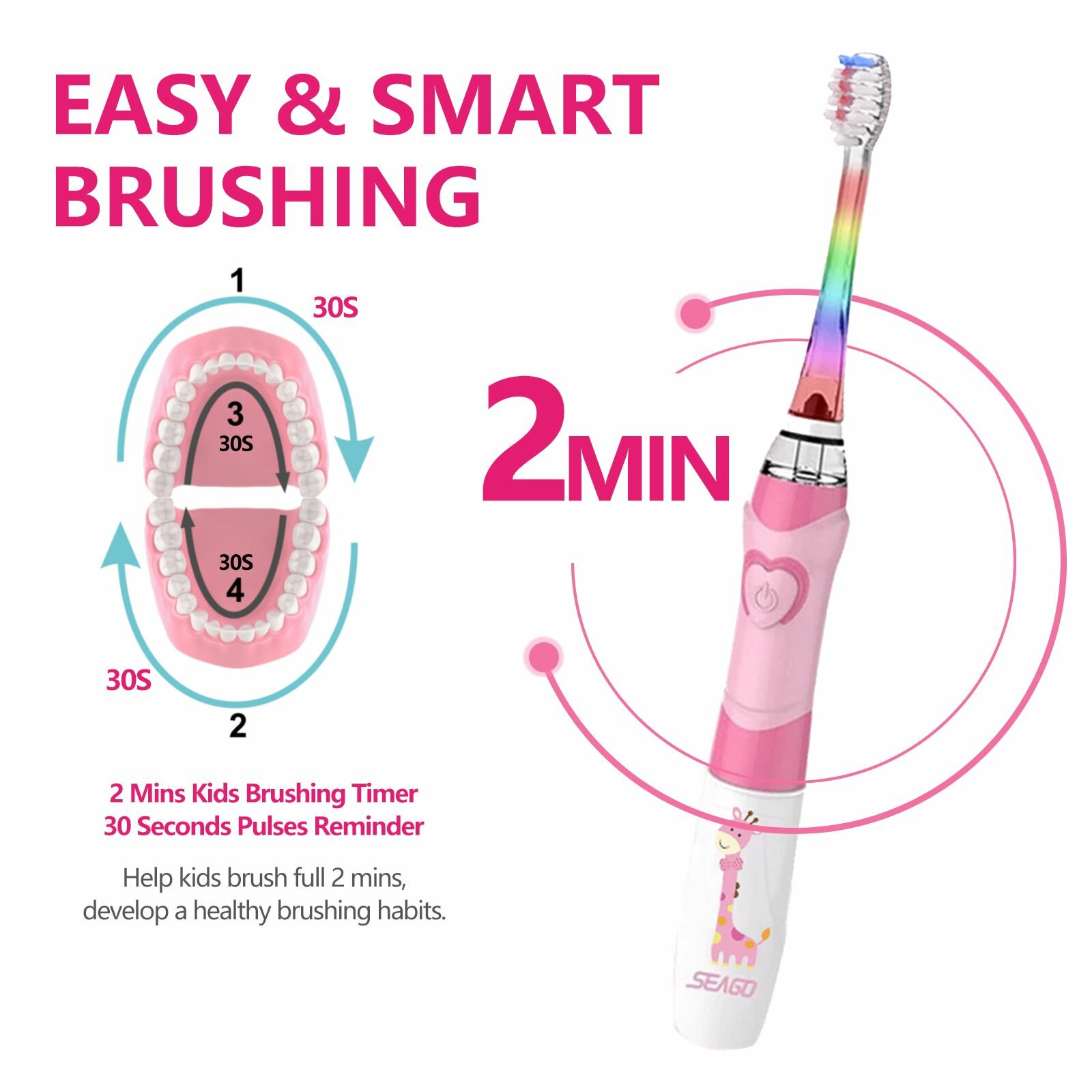 YUNCHI Детская электрическая зубная щетка. 4 шт Головка зубной щетки. Розовый