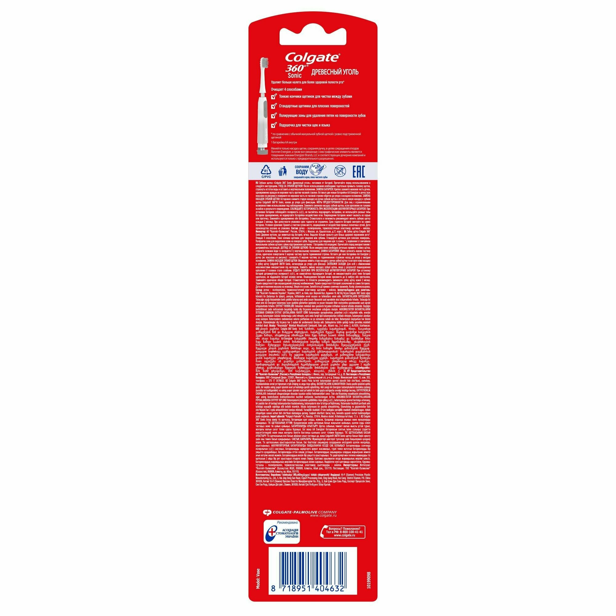 Электрическая зубная щетка Colgate 360 градусов Sonic Древесный уголь, на батарейках, мягкая жесткость информация: