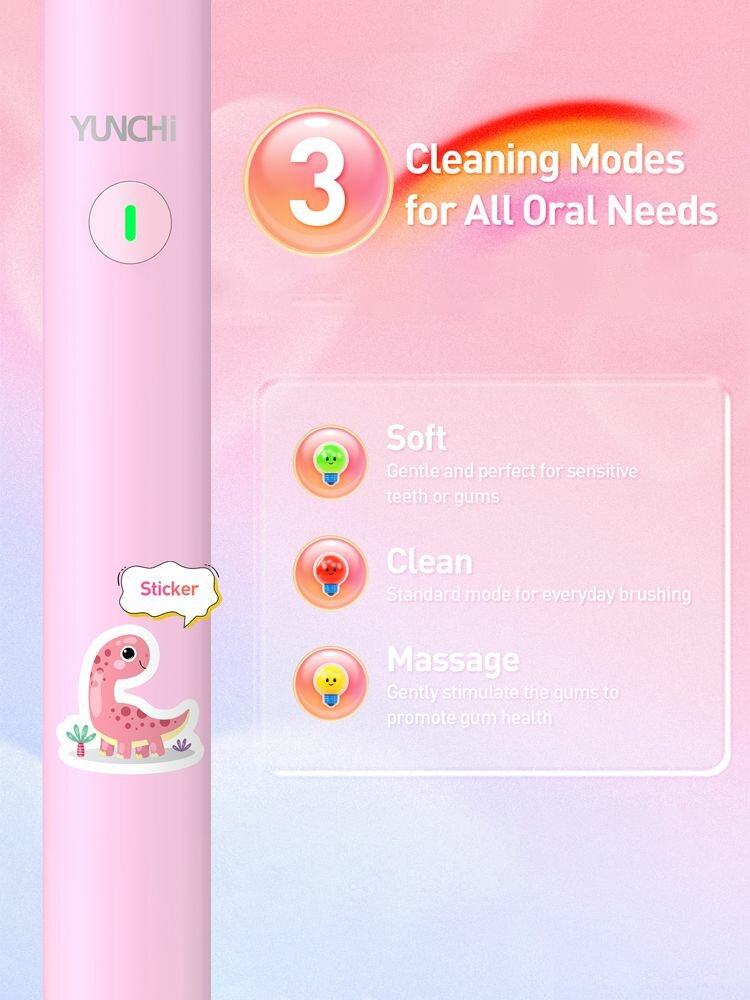 Отзывы на YUNCHI Детская электрическая зубная щетка. 4 шт Головка зубной щетки. Розовый