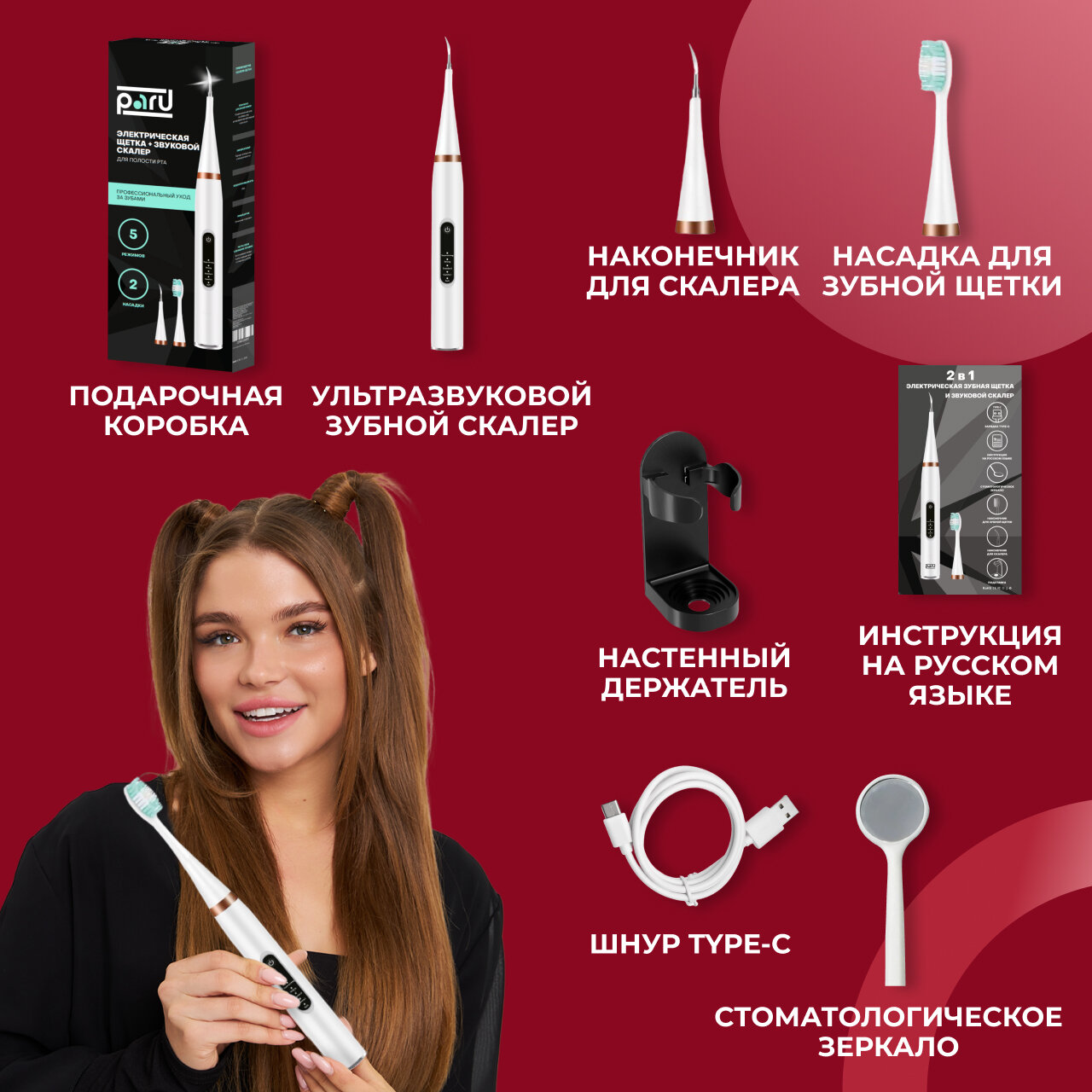 Скалер ультразвуковой Скалер для удаления зубного камня Электрическая зубная щетка Ультразвуковая зубная щетка 2в1 информация: