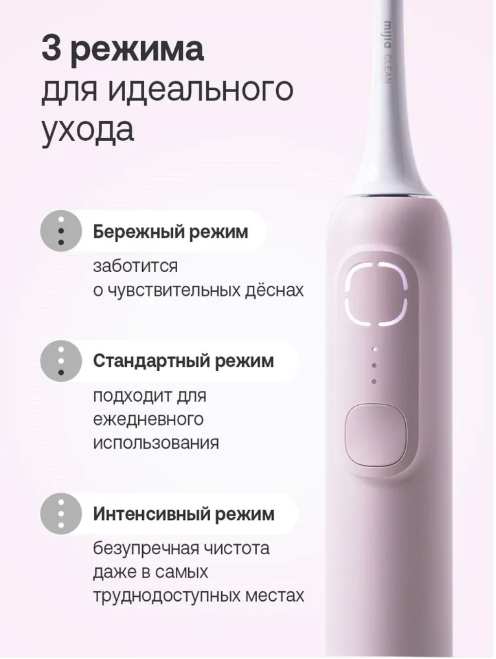 | Режимы работы | деликатная чистка / ежедневная чистка / массаж |