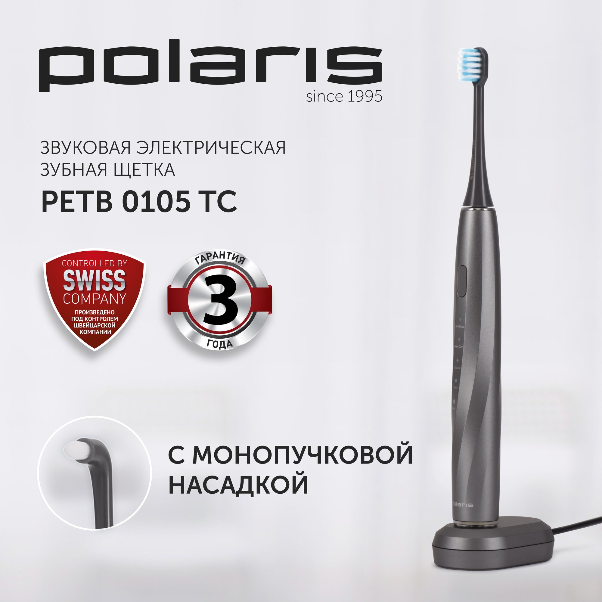 10 цен на Электрическая зубная щетка Polaris PETB 0105 TC с насадками средней жесткости, мягкой и и монопучковой, графитовый