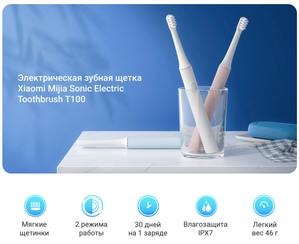 Отзывы на Электрическая зубная щетка MIJIA T100, 16 500 пульсаций в минуту, белый цвет