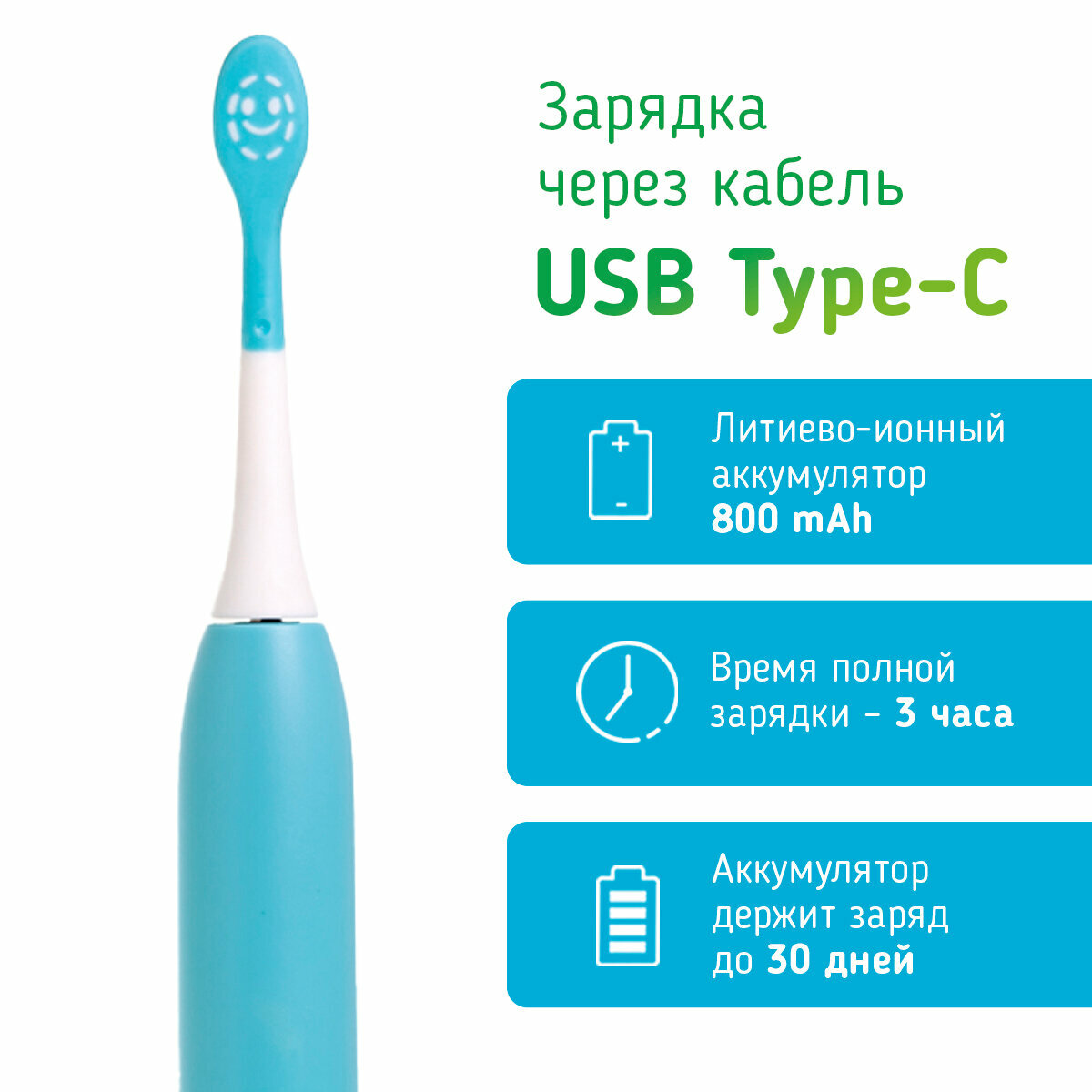 Электрическая детская звуковая зубная щетка Revyline RL 055, голубая 7+ информация: