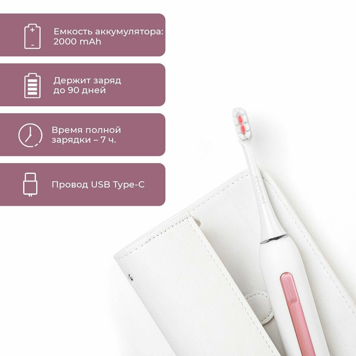 Электрическая зубная щетка Revyline RL070, звуковая, X-Waves, 3 насадки, аккумулятор информация: