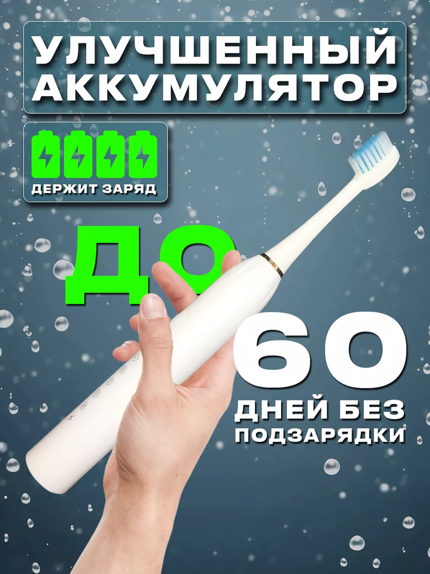 Электрическая зубная щетка с аккумулятором, 4 насадками, 6 режимами работы белого цвета информация: