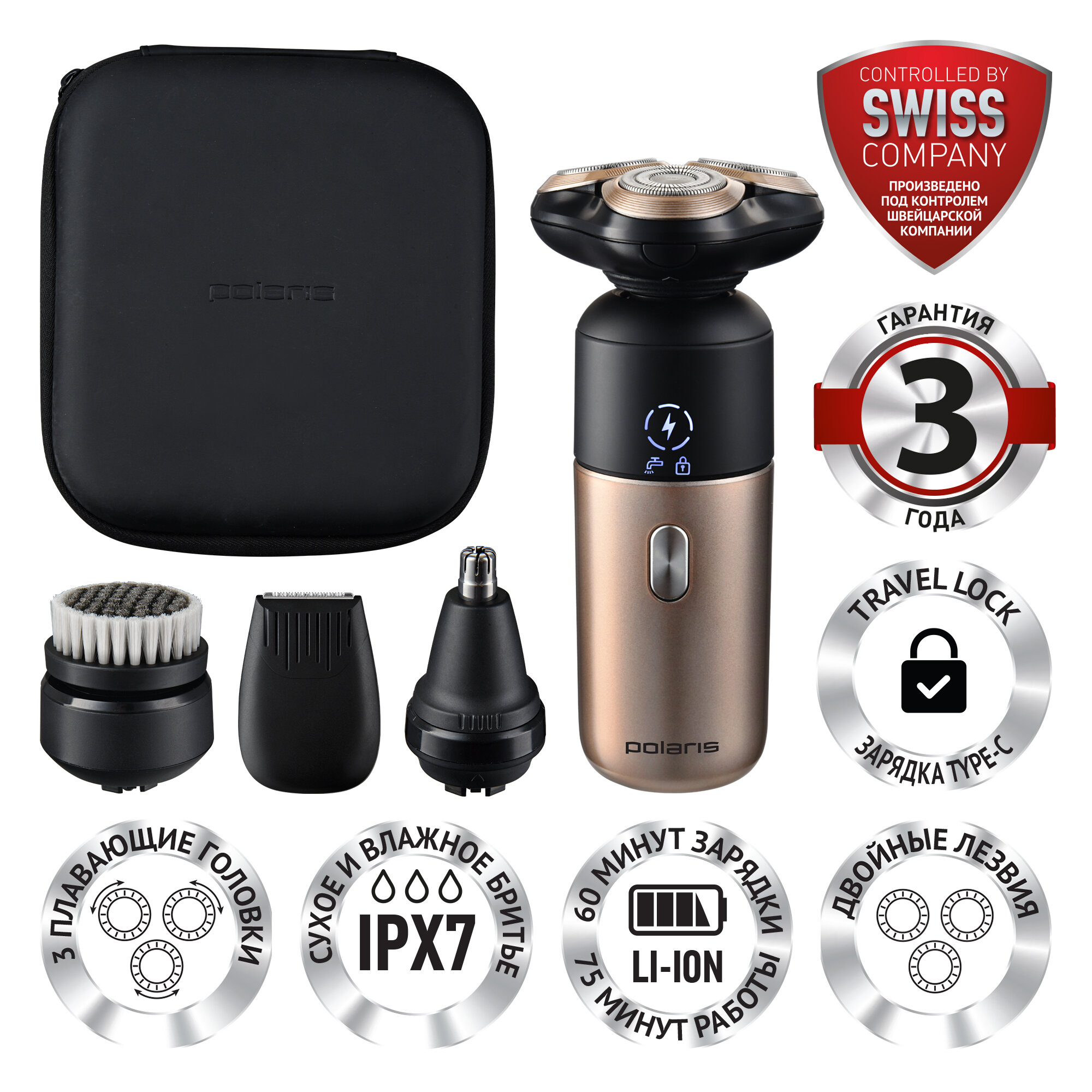 Polaris Электробритва 0307RC wet&dry PRO 5 blades + Подарок лезвия