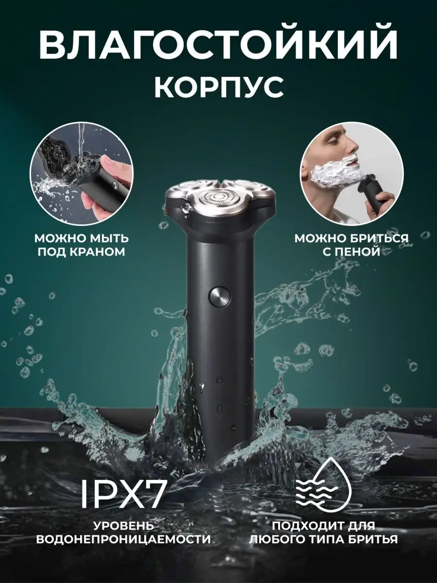 Электробритва Mi Electric Shaver S500, роторная, водонепроницаемая, 3 бреющих элемента, черная информация: