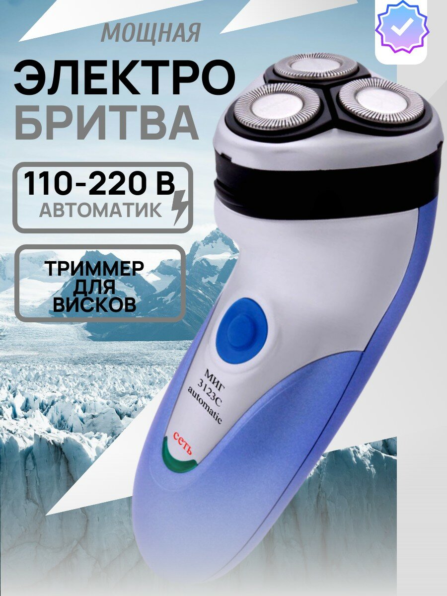 Электробритва МИГ 3123С, 3 бритвенные головки, плавающие, сетевая, с триммером информация:
