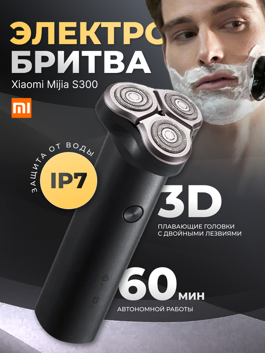 Электробритва Xiaomi MiJia S500 с тремя плавающими головками, водонепроницаемая, черная ! (Оргинал )