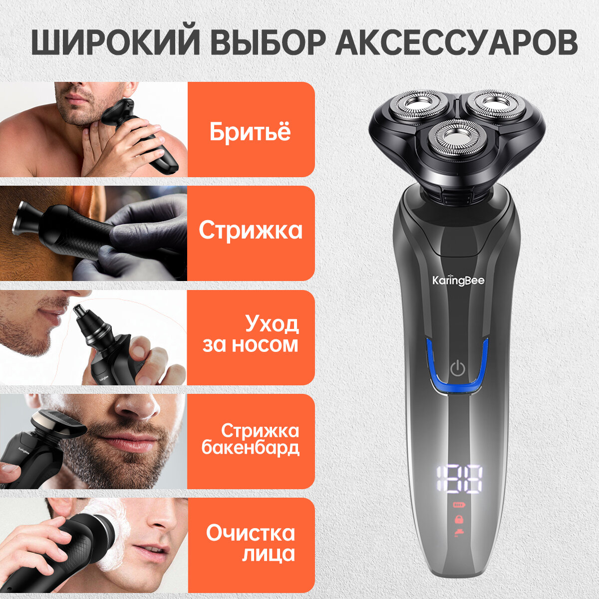 Отзывы на Электробритва Karingbee KB-5800, 5 в 1, роторная, водонепроницаемая, разноцветная