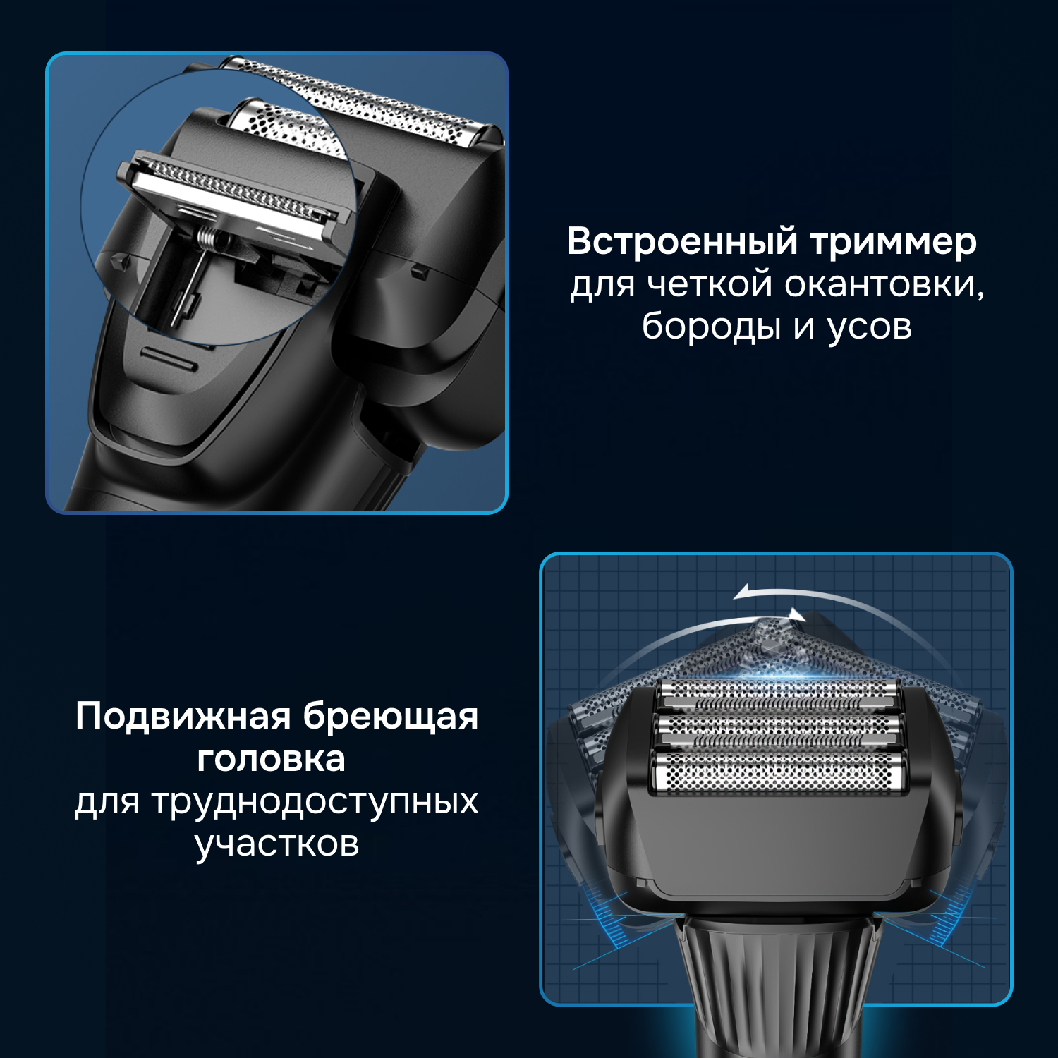 Электробритва мужская для лица беспроводная, встроенный триммер, сухое и влажное бритье информация: