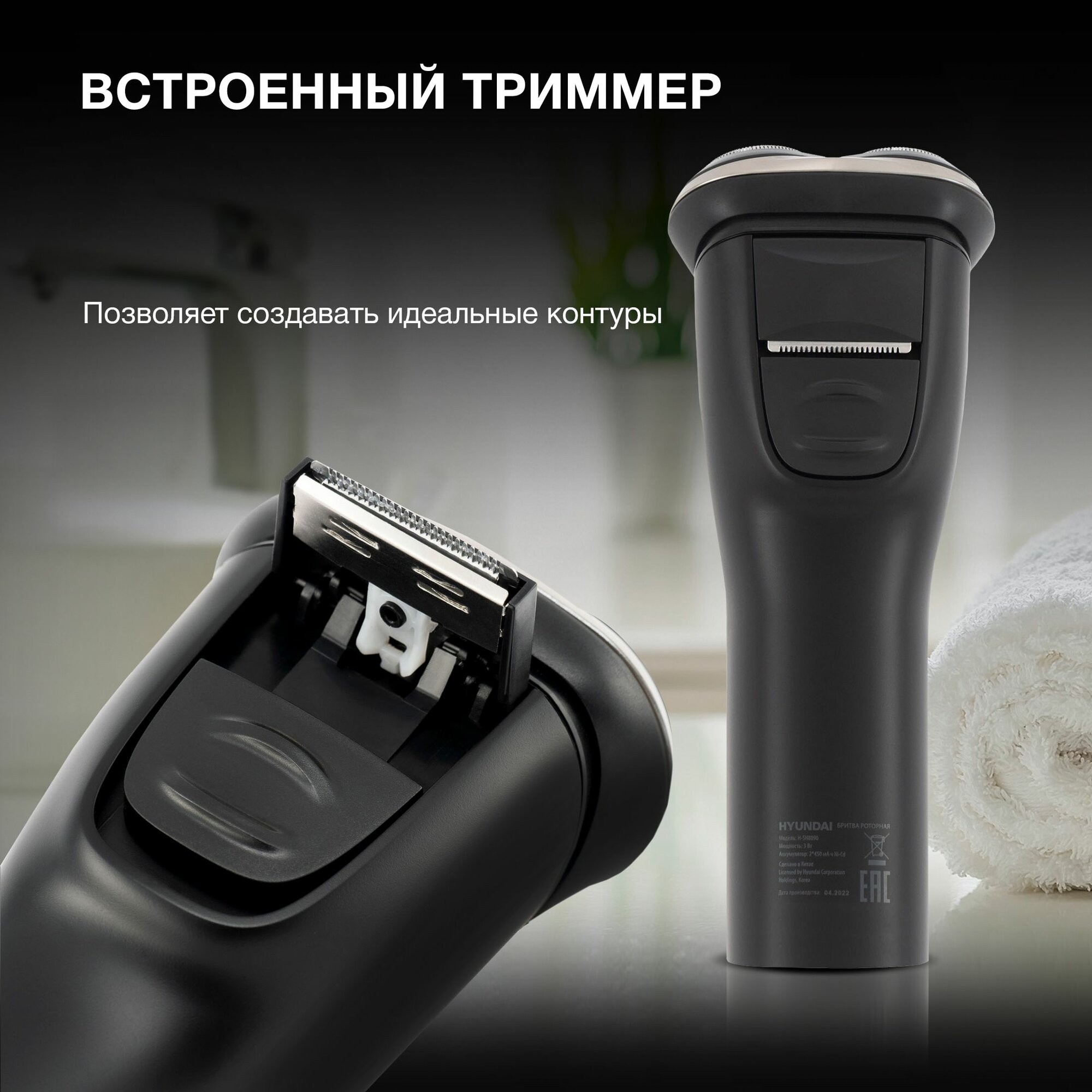 10 цен на Бритва роторная Hyundai H-SH8090 реж. эл:3 питан: аккум. черный/золотистый