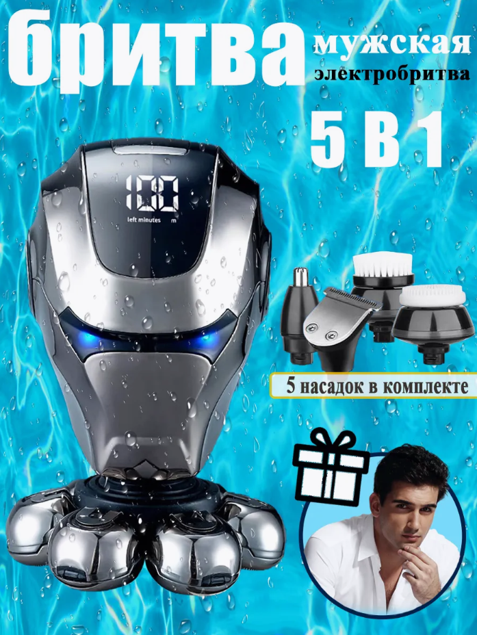 Бритва электрическая 6 в 1, Подарок на 23 февраля, Электробритва мужская, стрижки и ухода за собой с защитой от воды. информация: