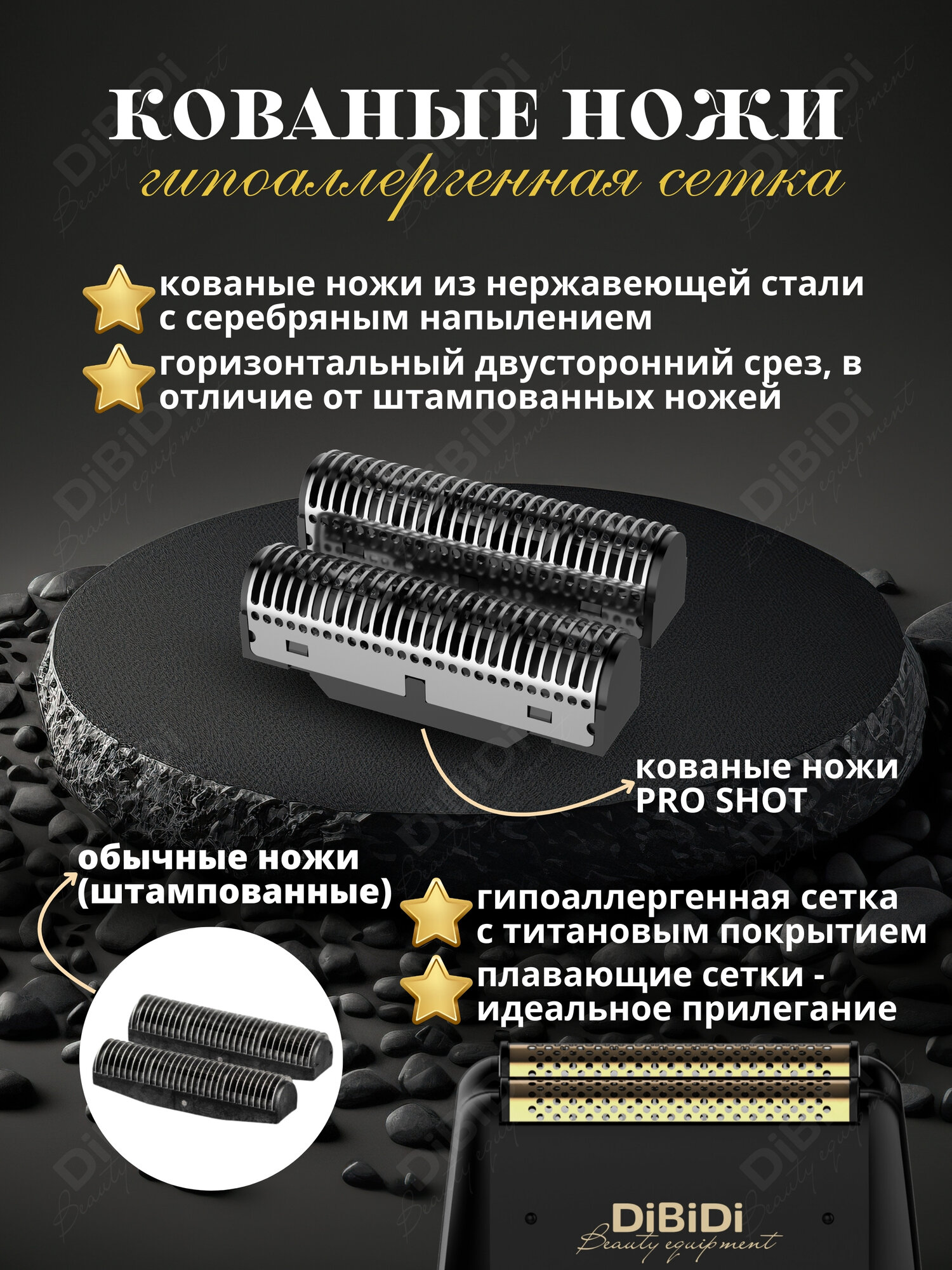 Профессиональный шейвер электробритва DiBiDi PRO SHOT, роторный, 180 минут работы, кованые ножи, 8800 об/мин информация: