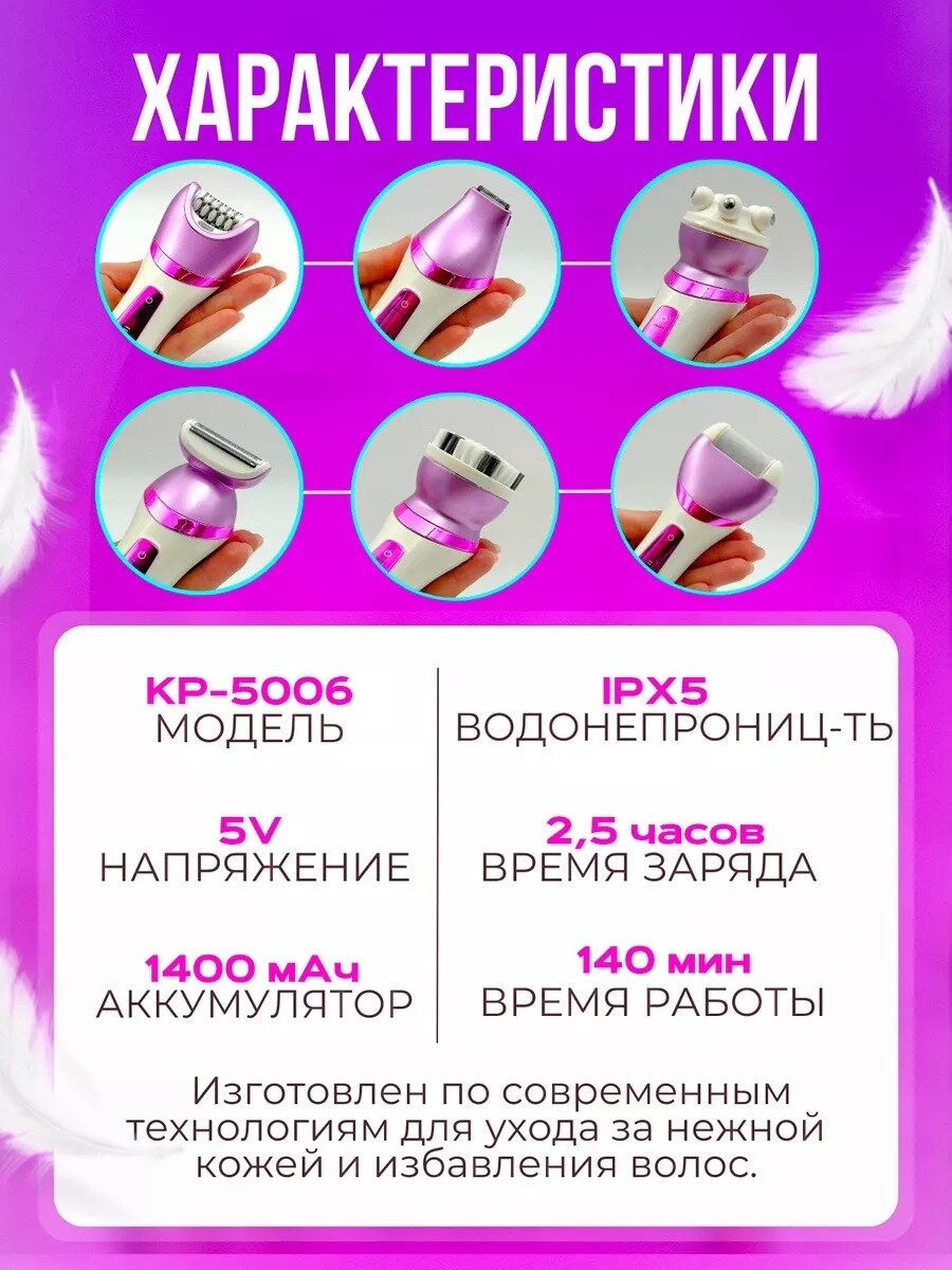 Депилятор женский 6 в 1/эпилятор/женский триммер/уход за телом/кожей, в зоне бикини, подмышках/домашний/белый/для дома информация: