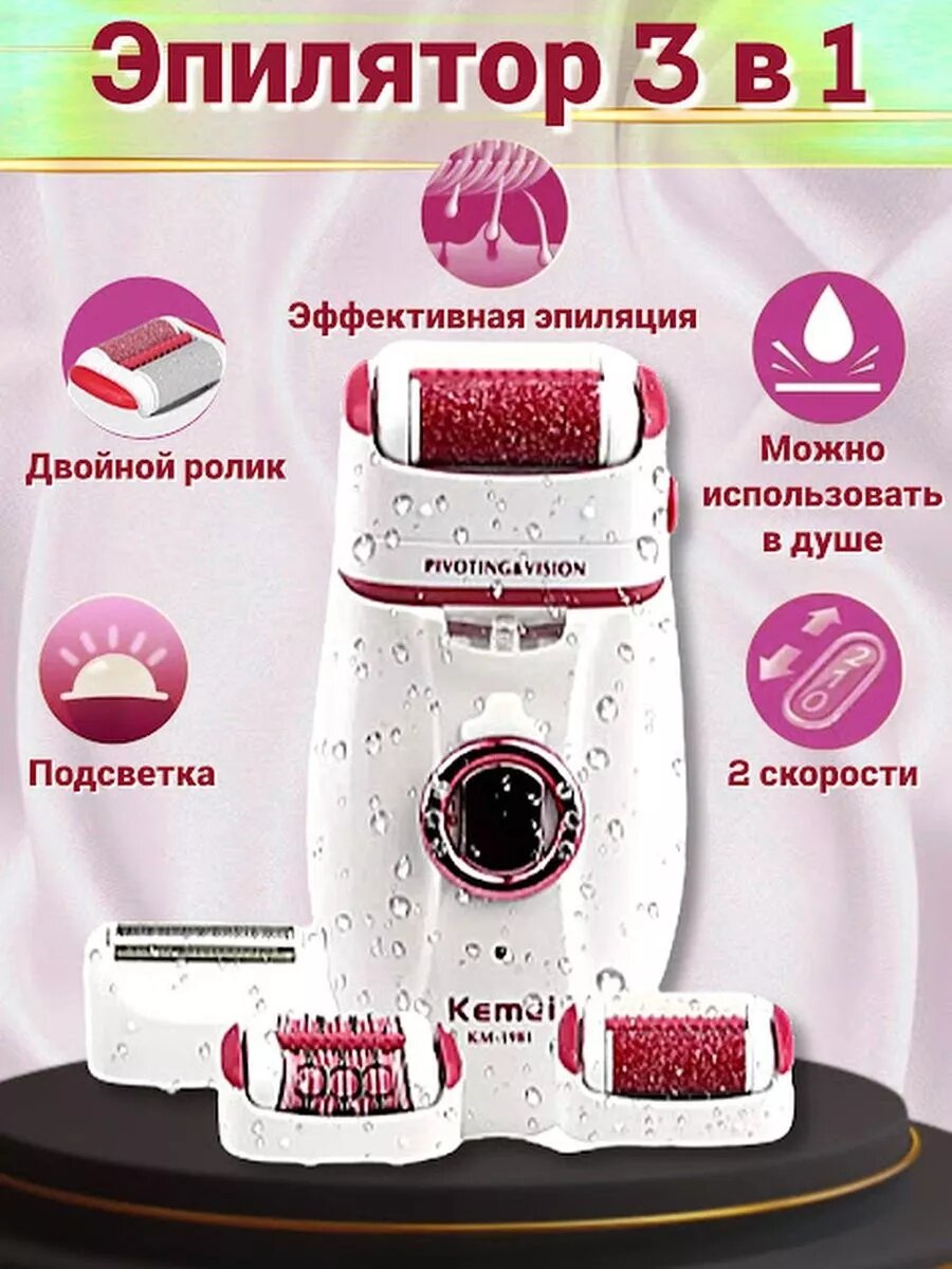Эпилятор-бритва-триммер All For Family KEMEI KM-6198B, от сети, подсветка 1 624 ₽