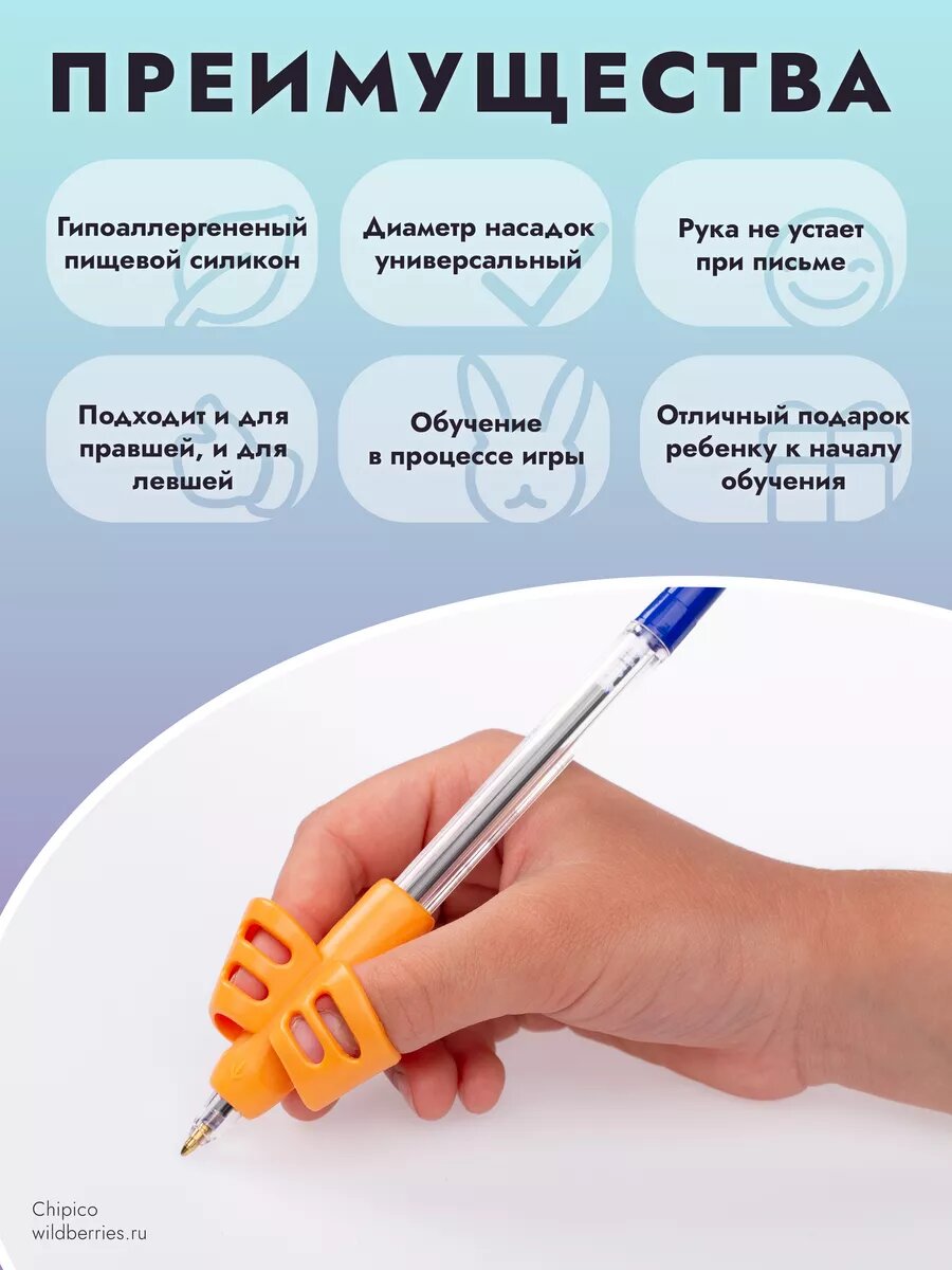 Отзывы на Набор для письма Chipico, для левшей и правшей, тренажеры насадки на ручку и карандаш, силикон, 3шт