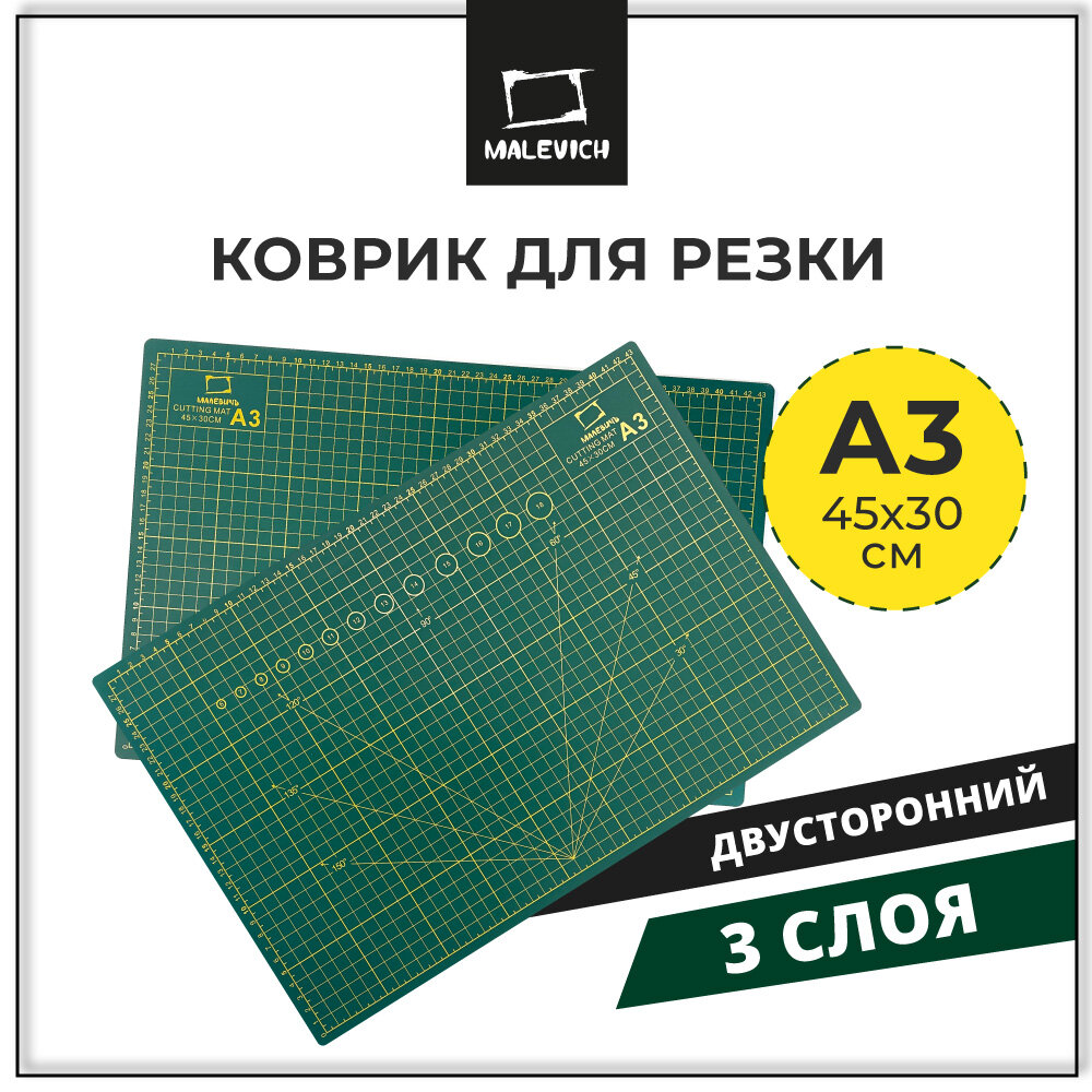 Коврик для резки Малевичъ 3-слойный, самовосстанавливающийся, формат А3