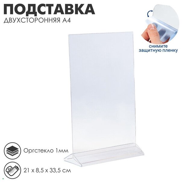 Подставка для рекламы, А4, двухсторонний, вертикальный, прозрачный, набор 2 шт. информация:
