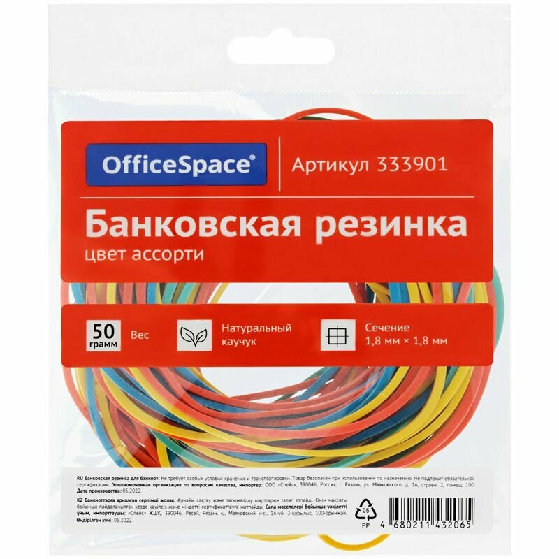 10 цен на Банковская резинка 50 г OfficeSpace, диаметр 60 мм, цвет ассорти