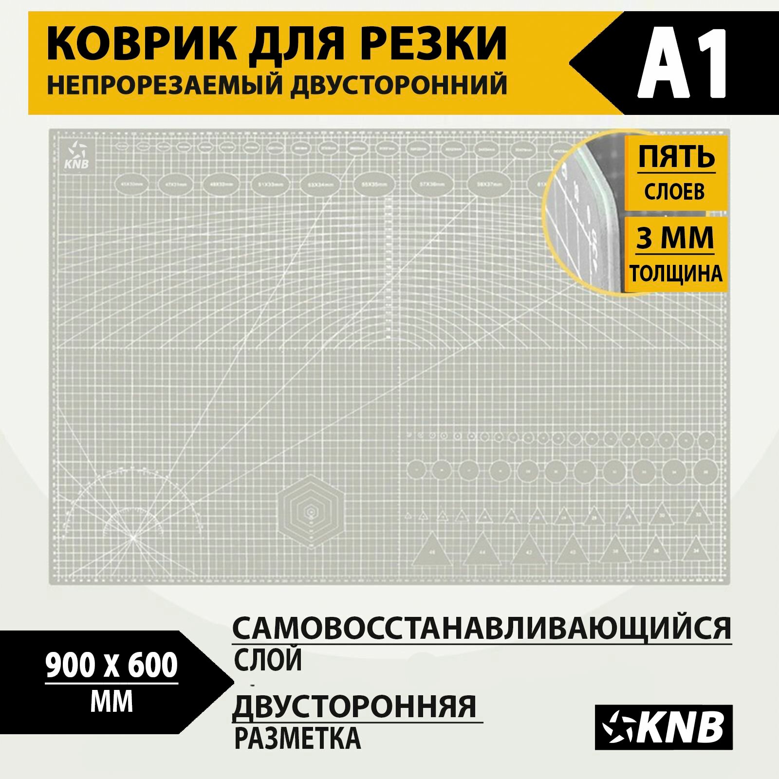 10 цен на Коврик для резки защитный KNB 900x600x3 мм, самовосстанавливающийся, непрорезаемый, двусторонняя разметка, серый