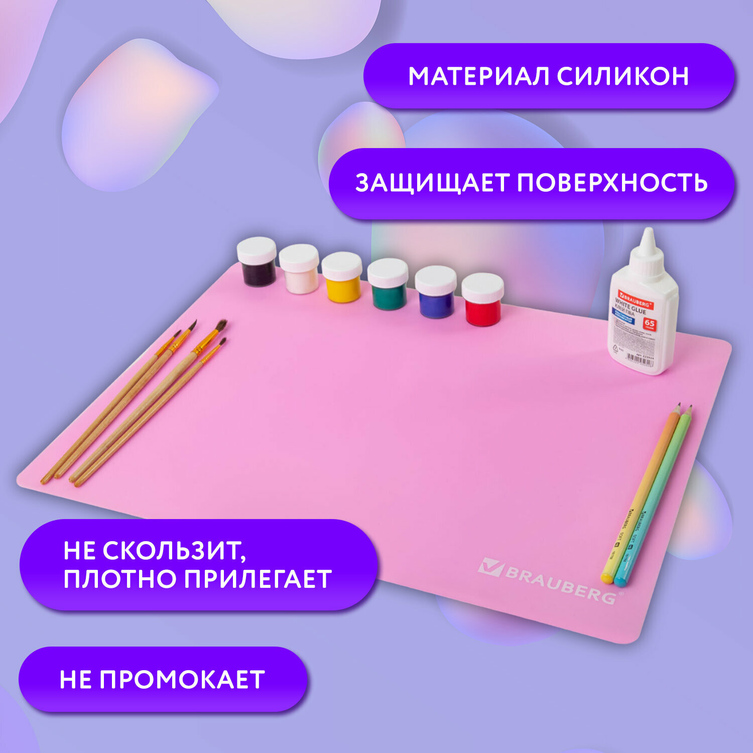 Клеенка настольная детская для труда и рисования, подложка на стол письменный фиолетовая, коврик для творчества, 30х40 см, силикон, Brauberg, 272375 254 ₽