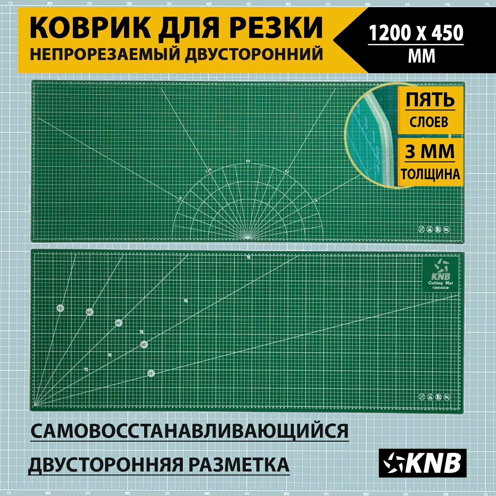 10 цен на Коврик для резки защитный KNB 1200x450x3 мм, самовосстанавливающийся, непрорезаемый, двусторонняя разметка, зеленый