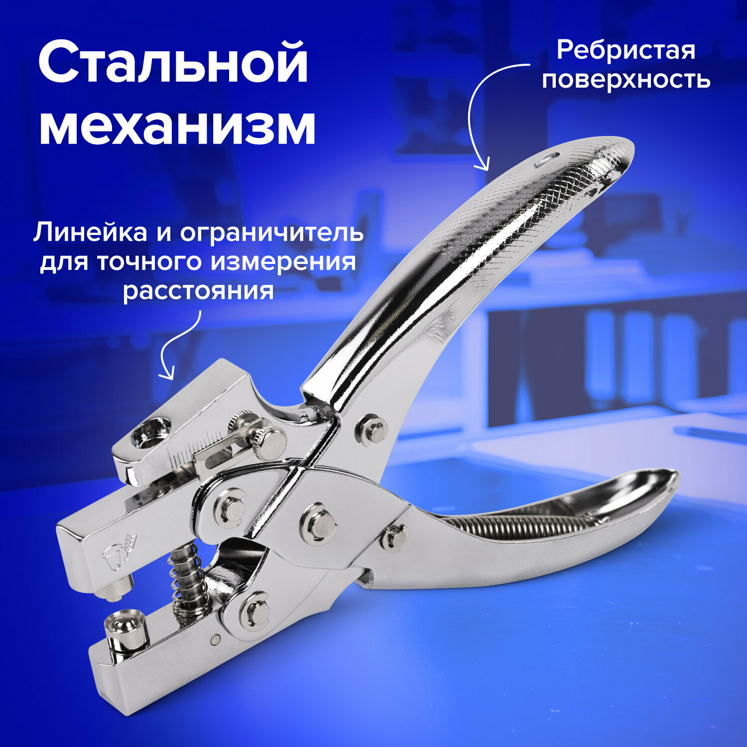 10 цен на Дырокол для бумаги, картона, ткани и кожи на 1 отверстие металлический, для люверса до 30 листов, диаметр отверстия 5 мм, Brauberg, 272763