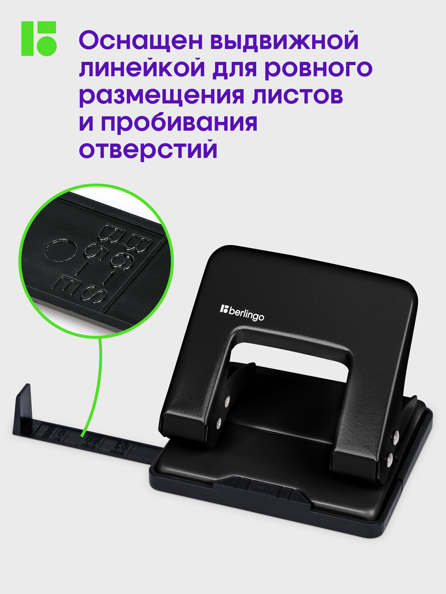 Дырокол Berlingo "Universal" 20л, металлический, черный, с линейкой информация: