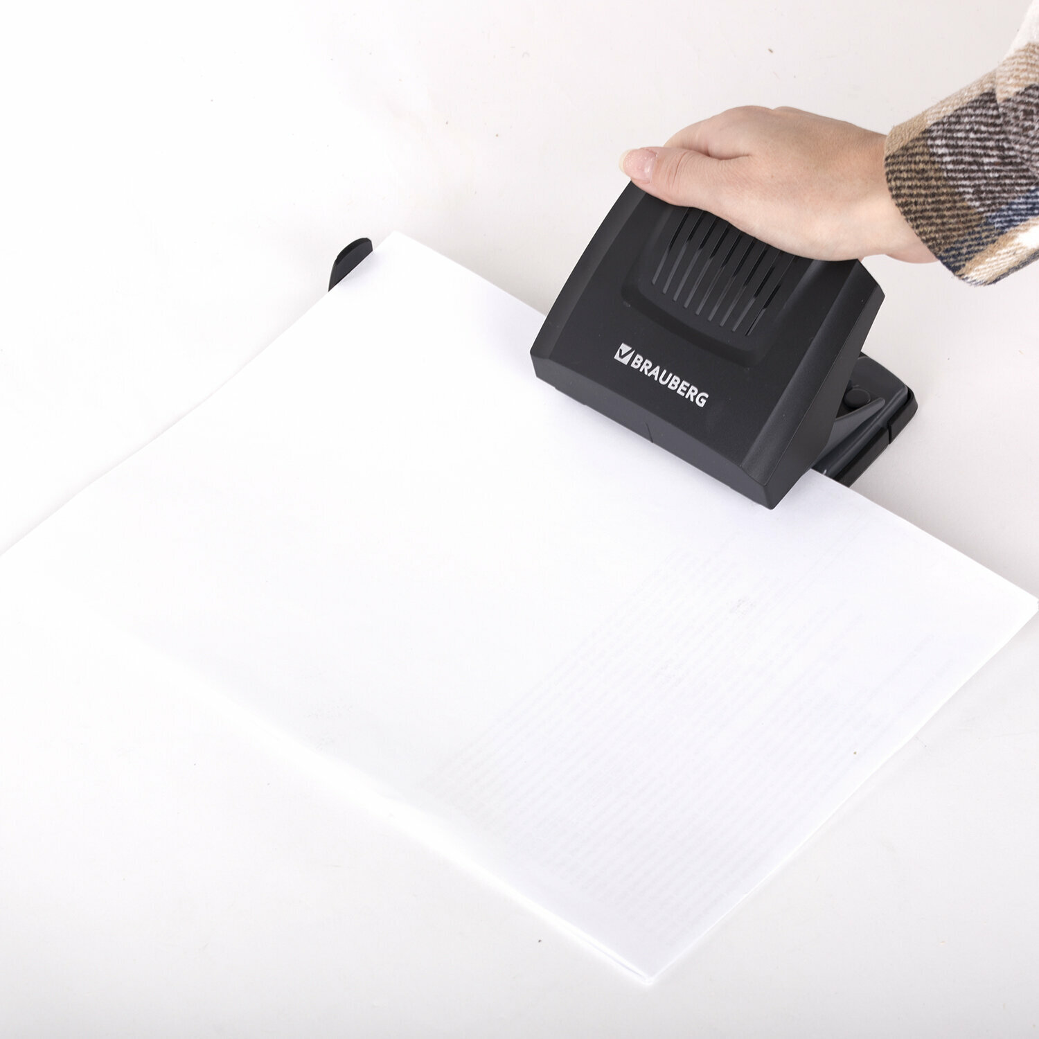 Дырокол для бумаги канцелярский с линейкой А4 до 20 листов, черный, Brauberg Super, 272742