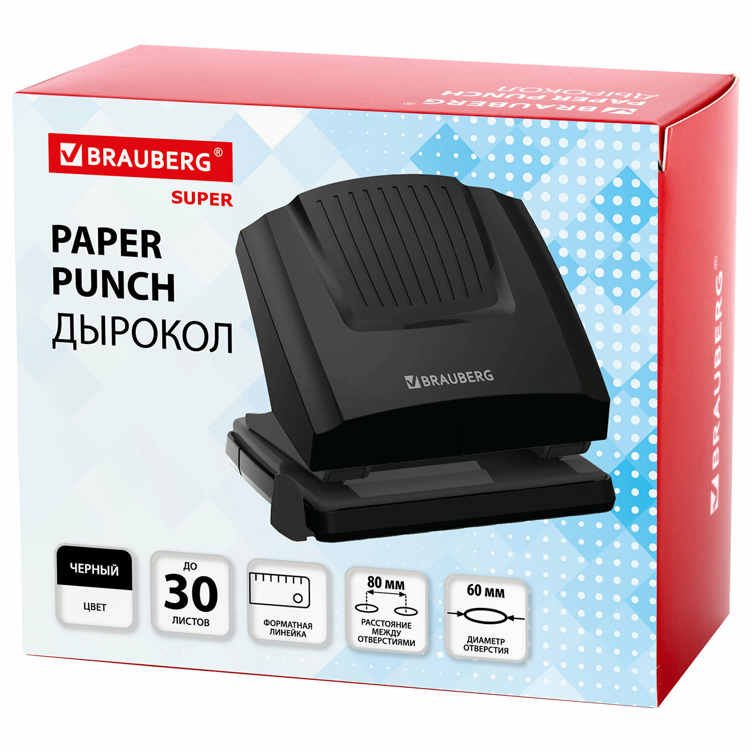 Дырокол BRAUBERG "SUPER", до 30 листов, черный, 272744 информация: