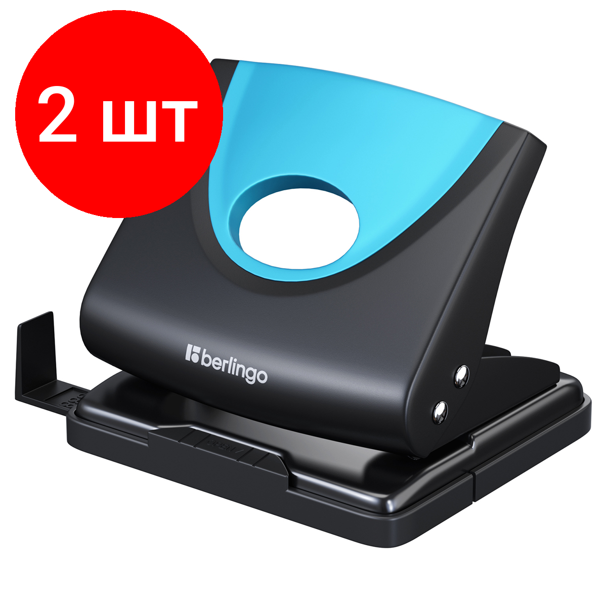 Комплект 2 шт, Дырокол Berlingo "Office Soft" 20л, пластиковый, синий, с линейкой информация: