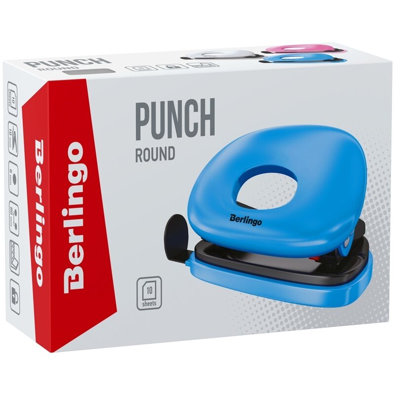Комплект 5 шт, Дырокол Berlingo "Round" 10л, пластиковый, розовый