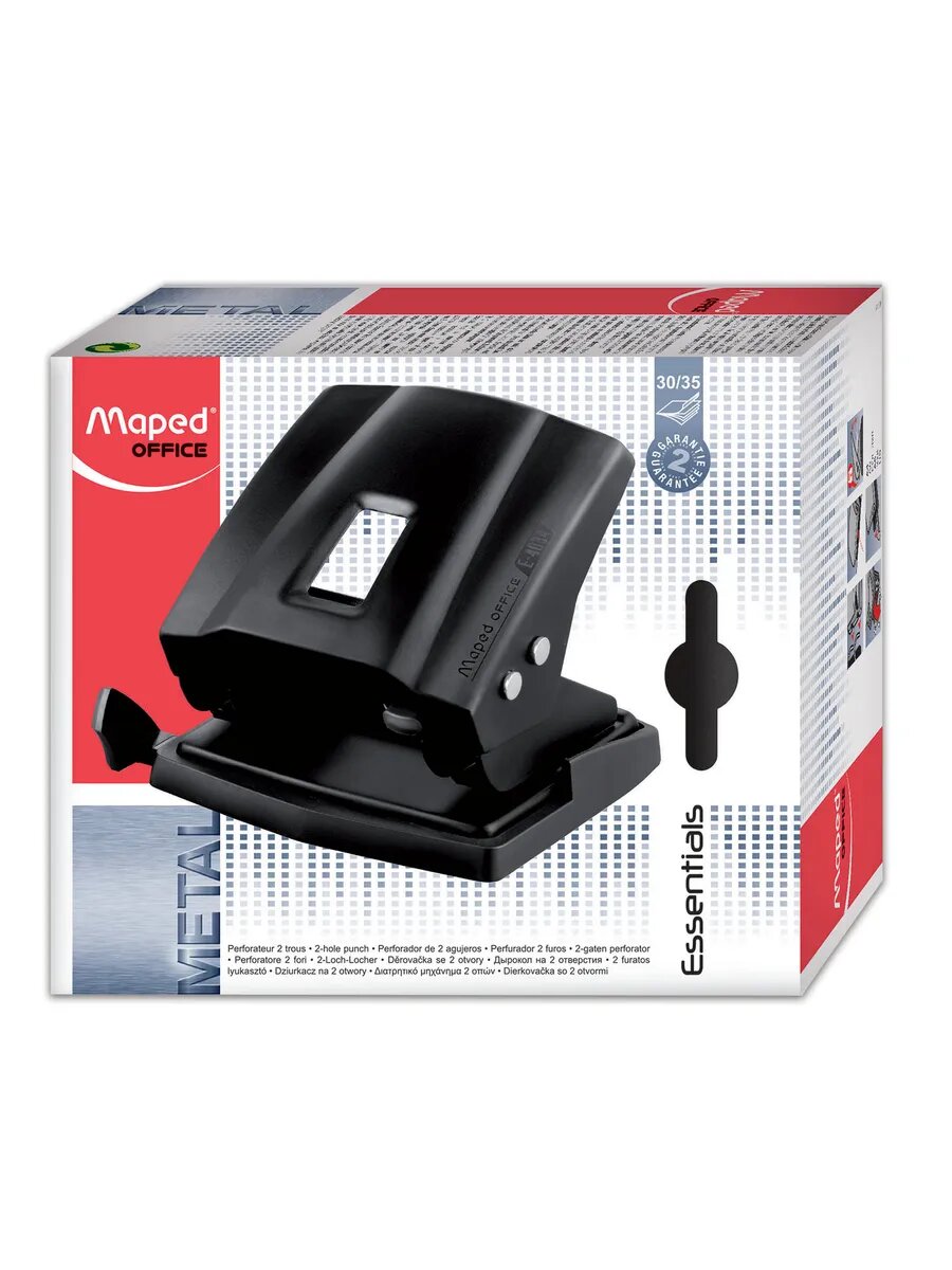 Комплект 2 штук, Дырокол Maped ESSENTIALS METAL до 30-35 листов, металл, черный,403411