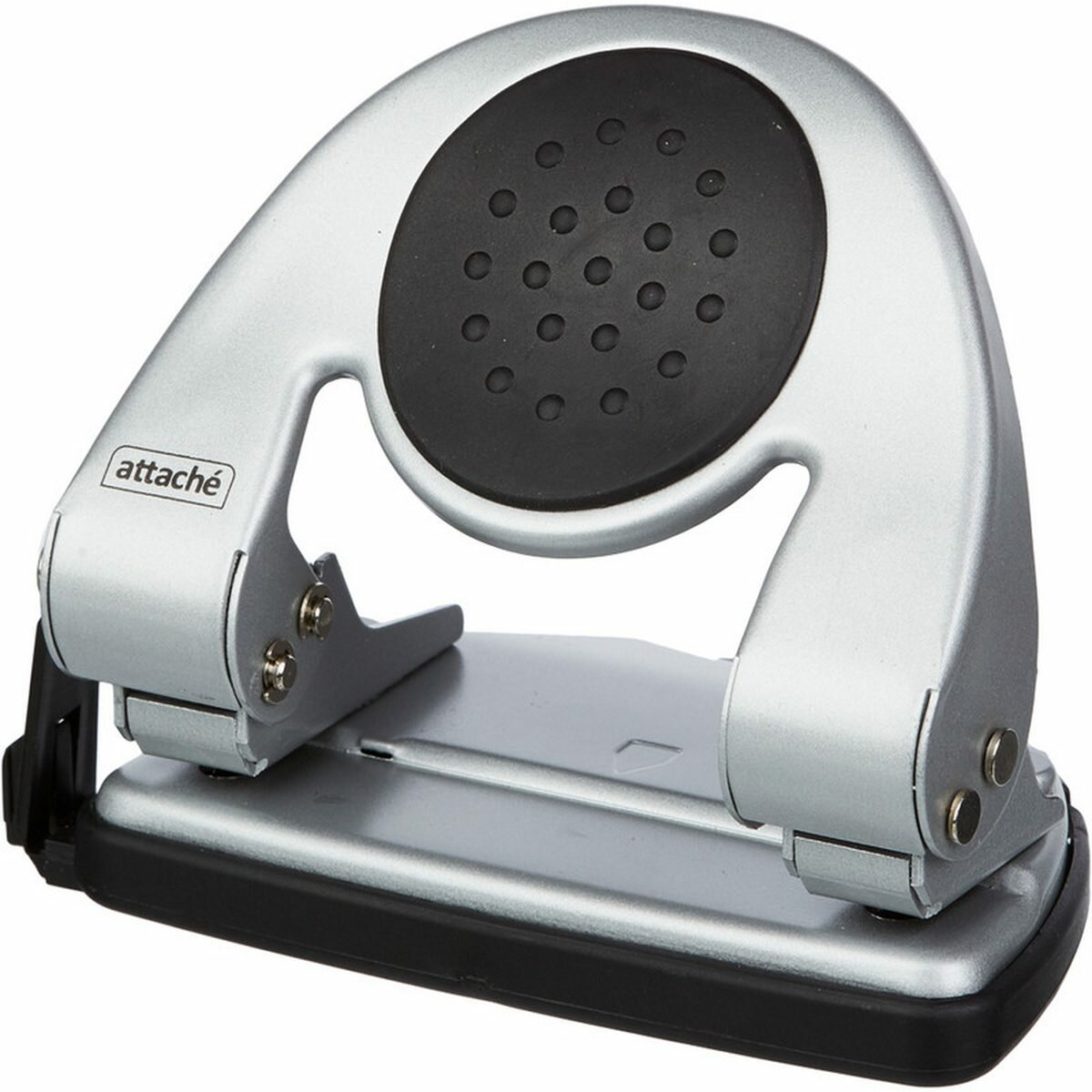 Attache Дырокол металлический, с линейкой, с резиновой вставкой, до 20 листов, серебристый