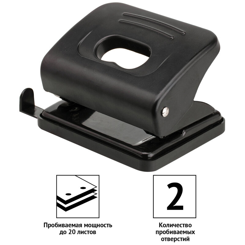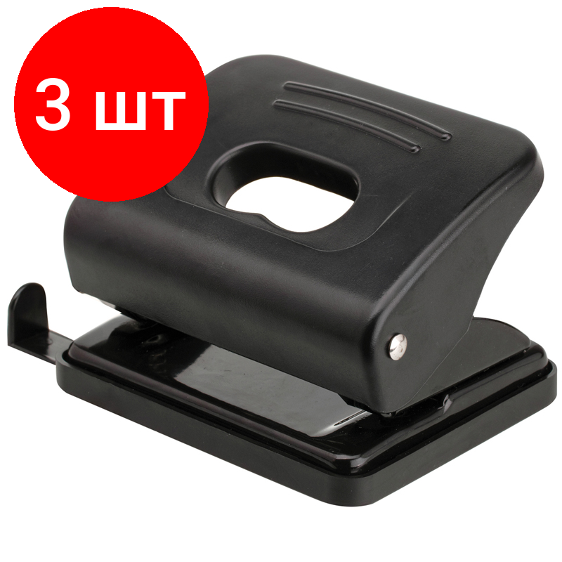 Отзывы на Комплект 3 шт, Дырокол OfficeSpace 20л, пластиковый, черный, с линейкой