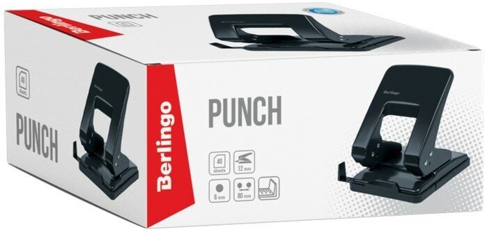 10 цен на 3 шт. Дырокол металлический 40 листов, Berlingo, с линейкой, чёрный