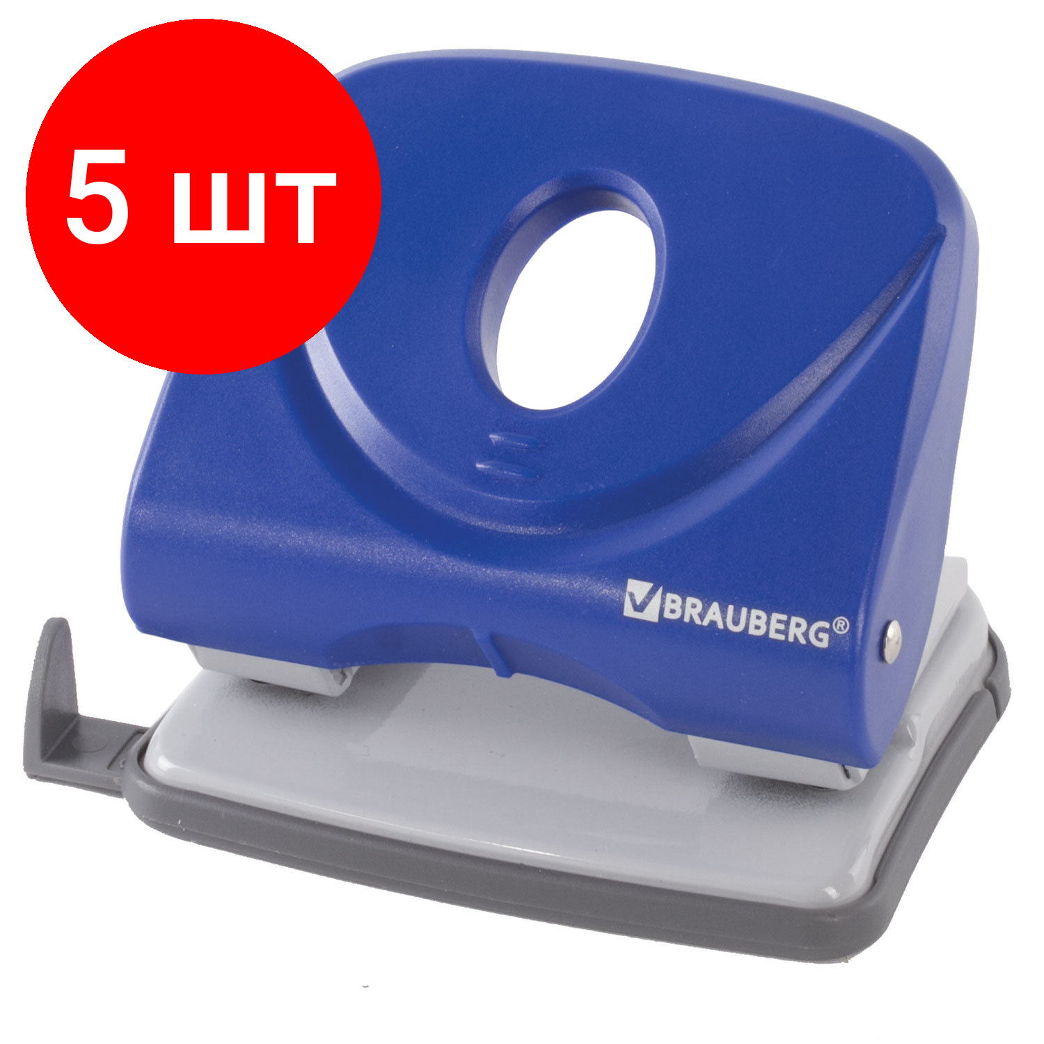 Отзывы на Комплект 5 шт, Дырокол BRAUBERG "Original", до 25 листов, синий, 222543