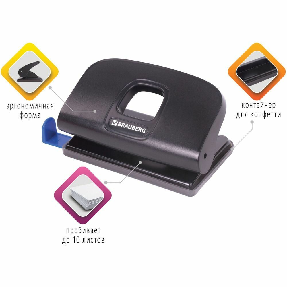 Дырокол BRAUBERG "Extra", до 10 листов, черный, 229090 информация: